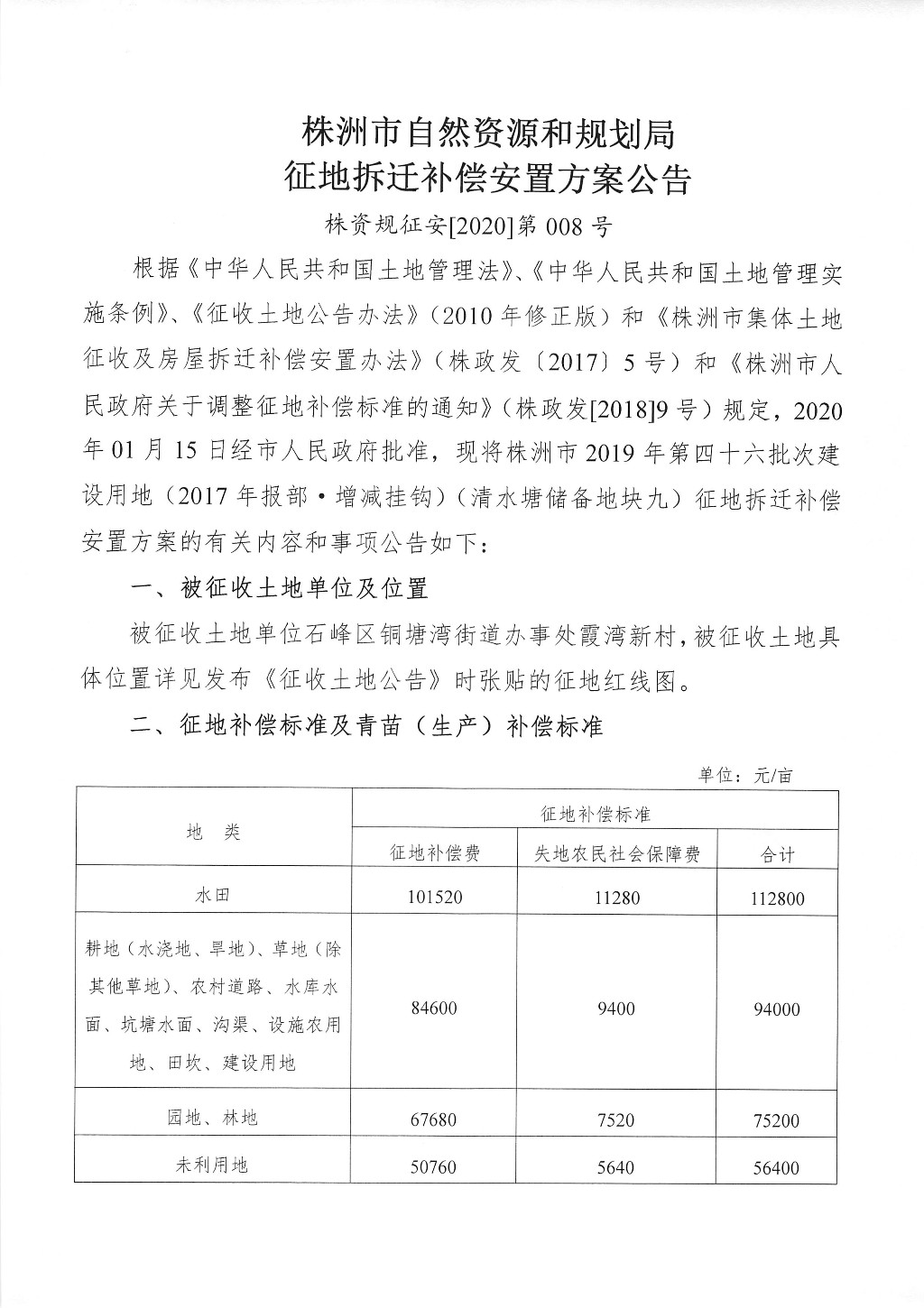 征地拆迁补偿安置方案公告--清水塘储备地块九