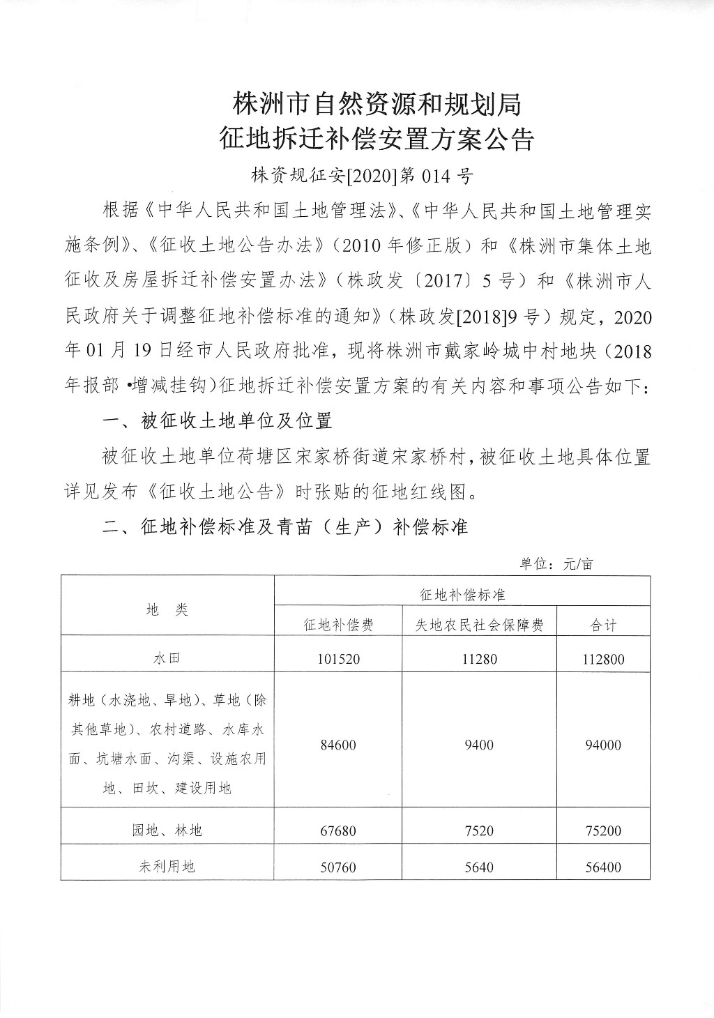 征地拆迁补偿安置方案公告--株洲市戴家岭城中村地块(2018年报部.增减挂钩)