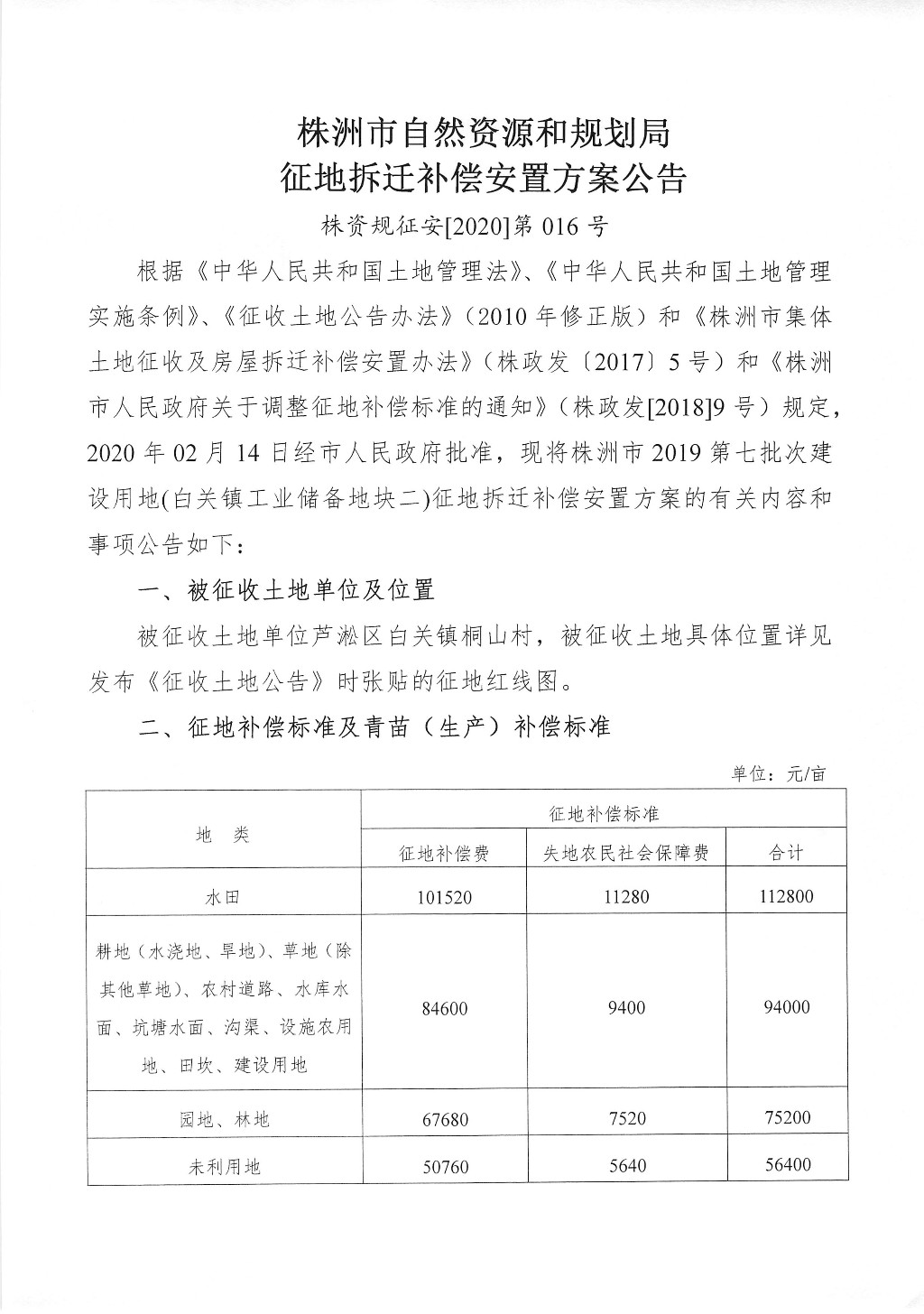 征地拆迁补偿安置方案公告--白关镇工业储备地块二