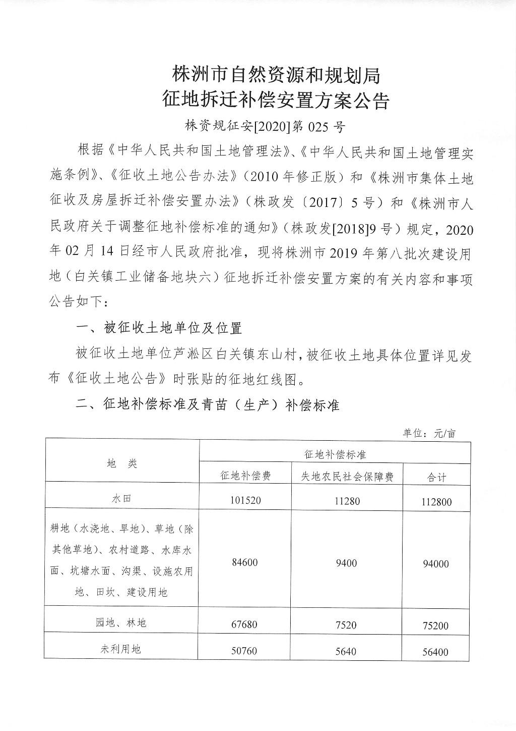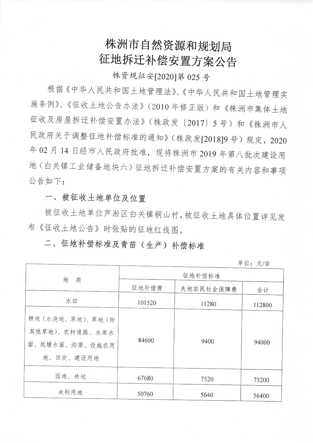 征地拆迁补偿安置方案公告--白关镇工业储备地块六