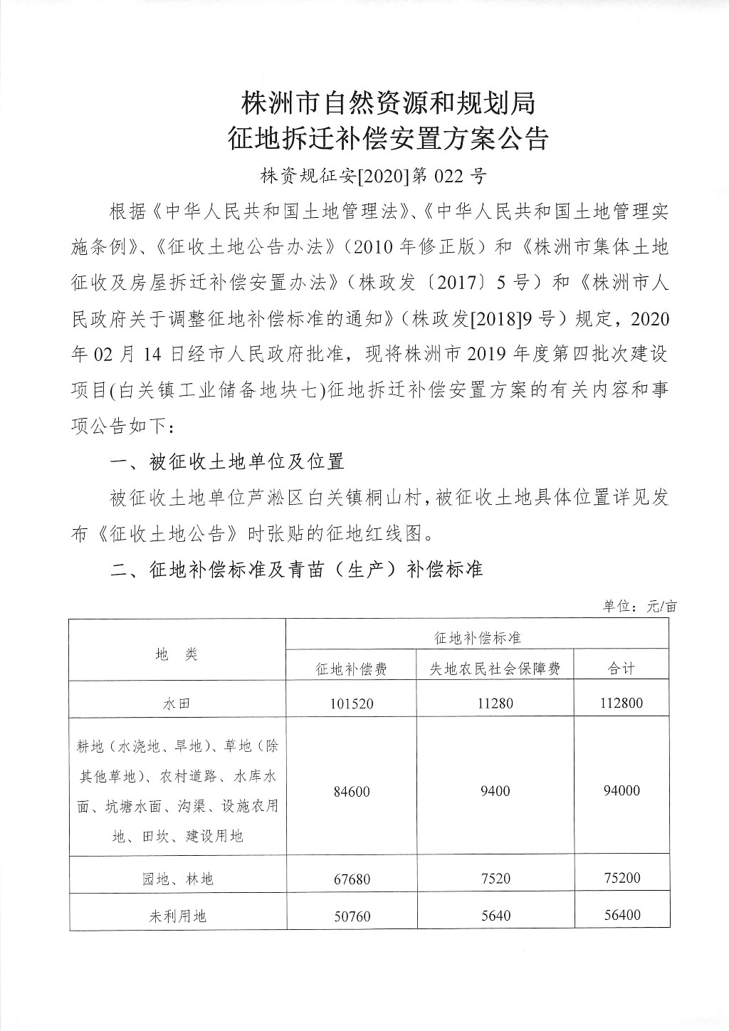 征地拆迁补偿安置方案公告--白关镇工业储备地块七