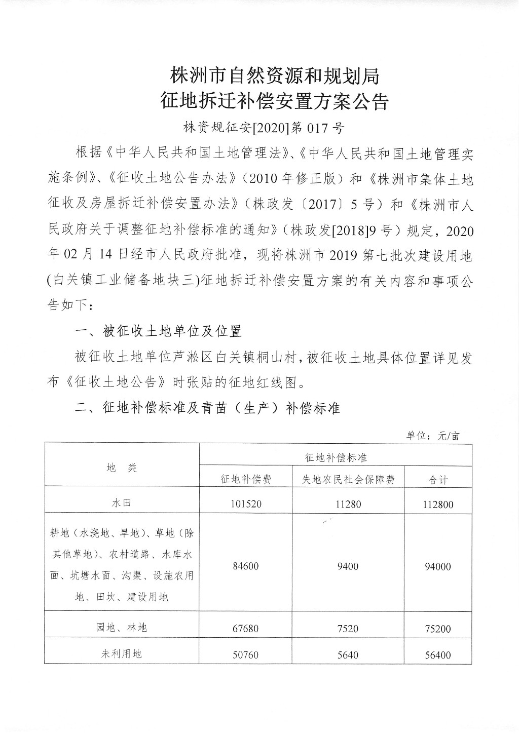 征地拆迁补偿安置方案公告---白关镇工业储备地块三