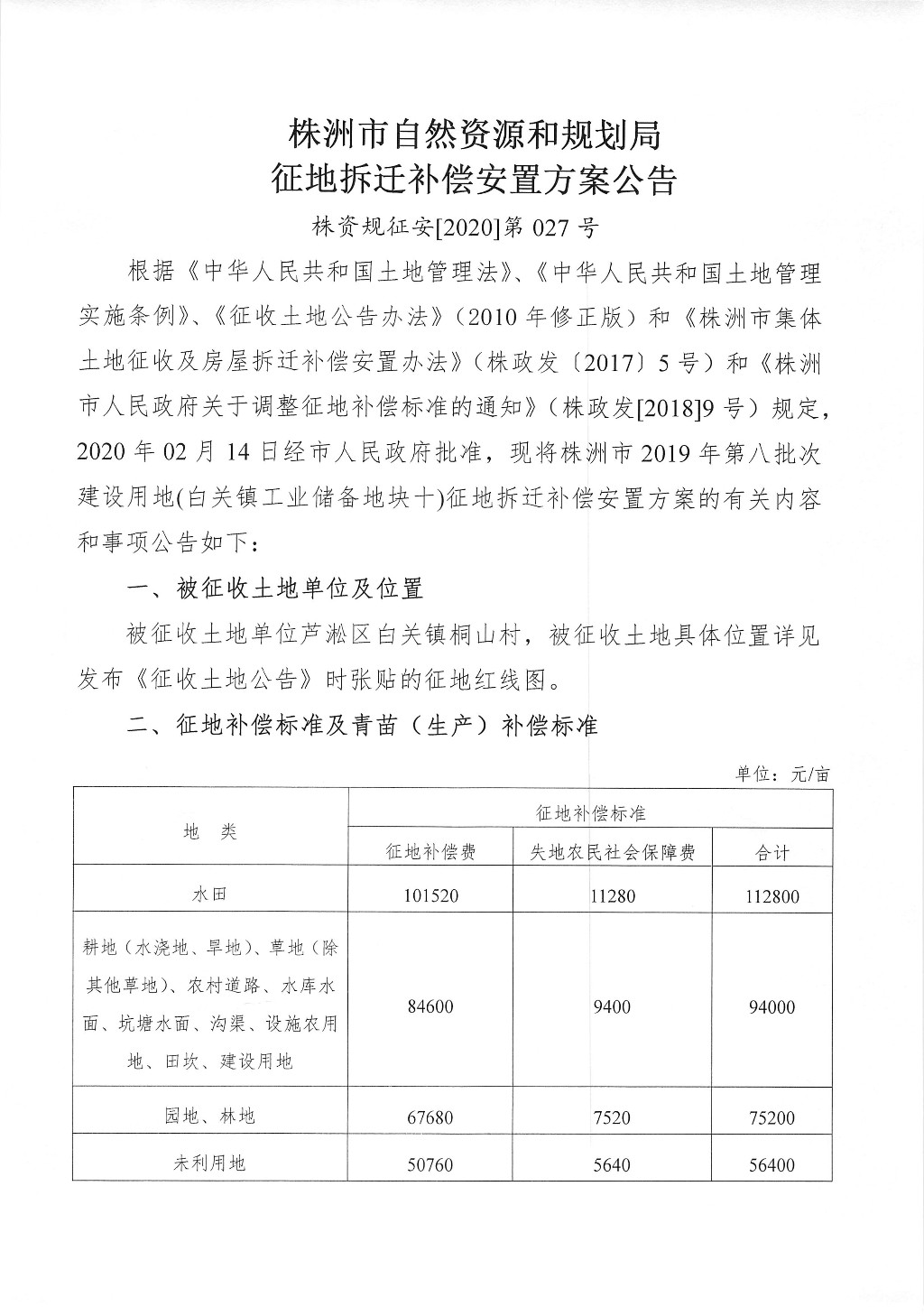 征地拆迁补偿安置方案公告--白关镇工业储备地块十
