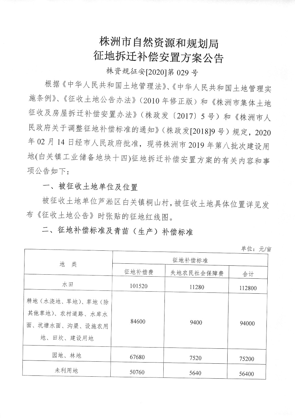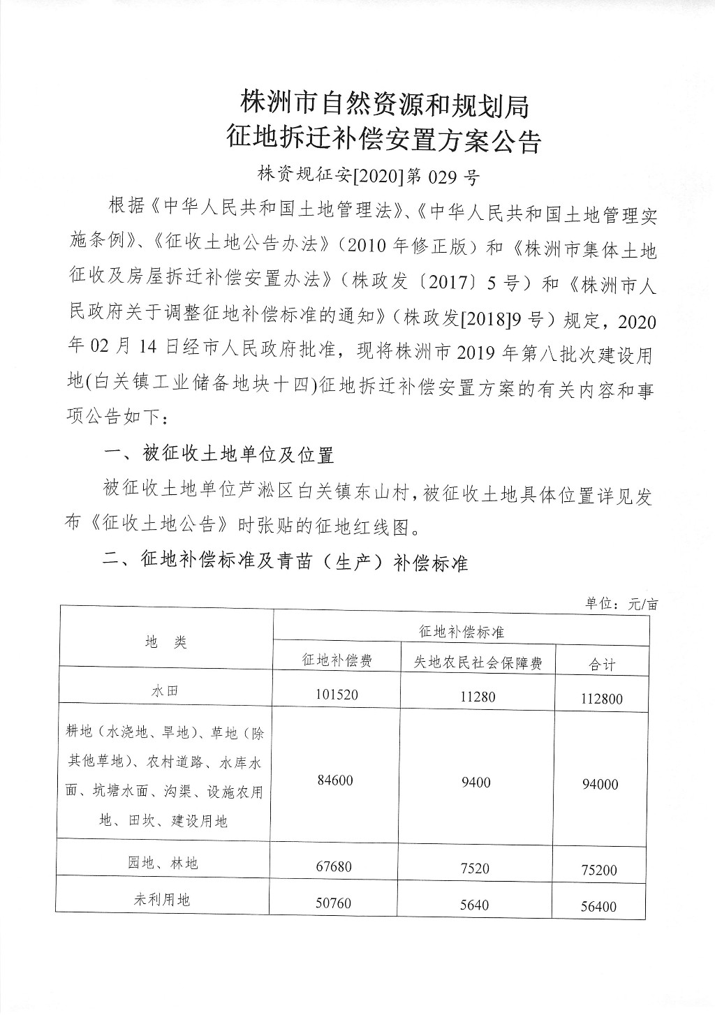 征地拆迁补偿安置方案公告---白关镇工业储备地块十四