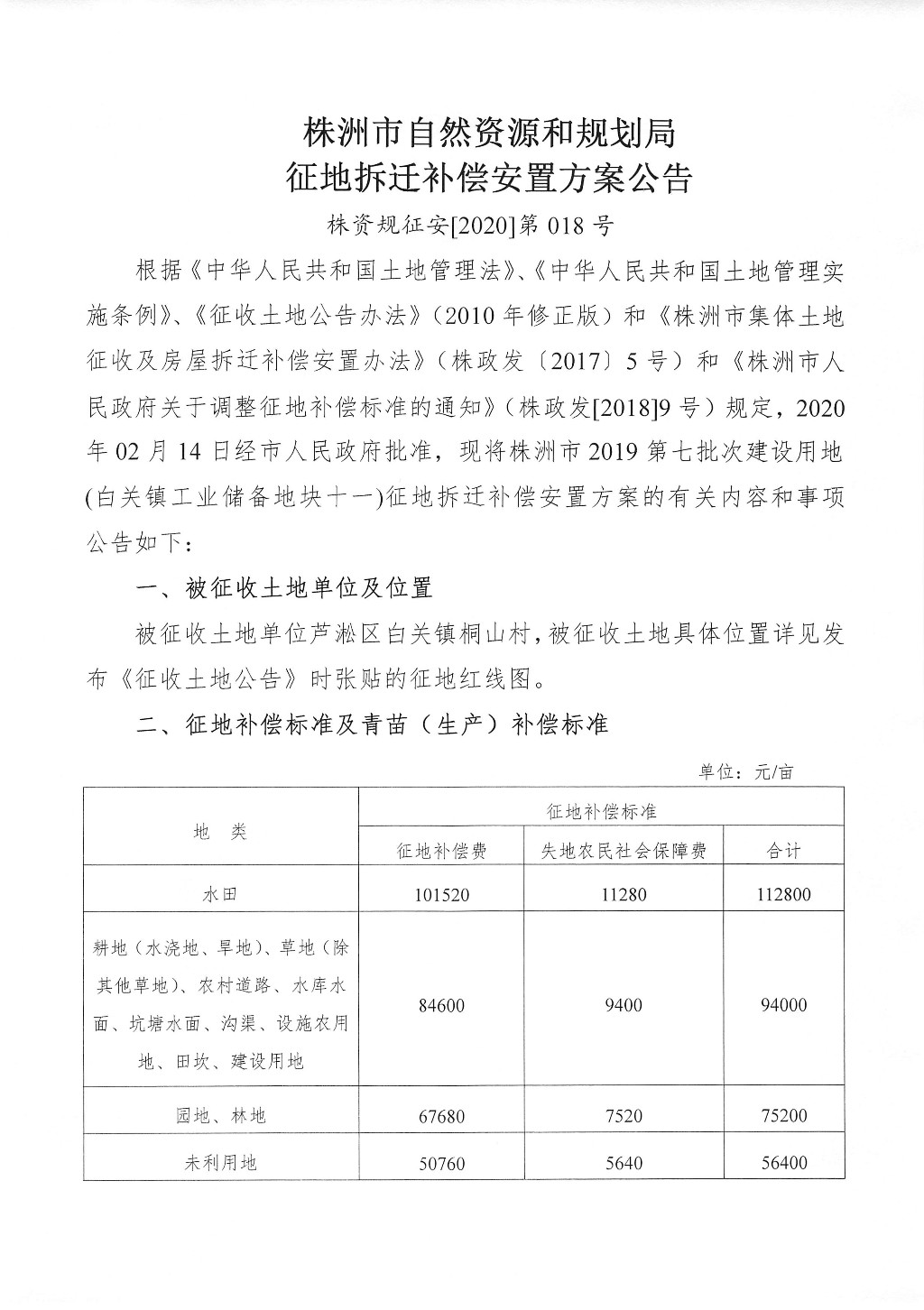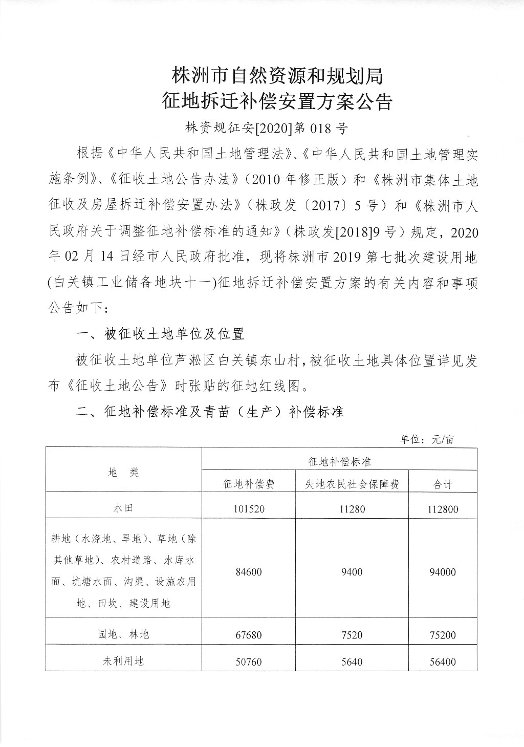 征地拆迁补偿安置方案公告--白关镇工业储备地块十一