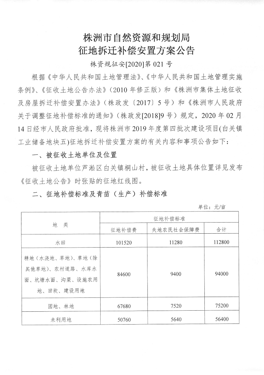 征地拆迁补偿安置方案公告---白关镇工业储备地块五