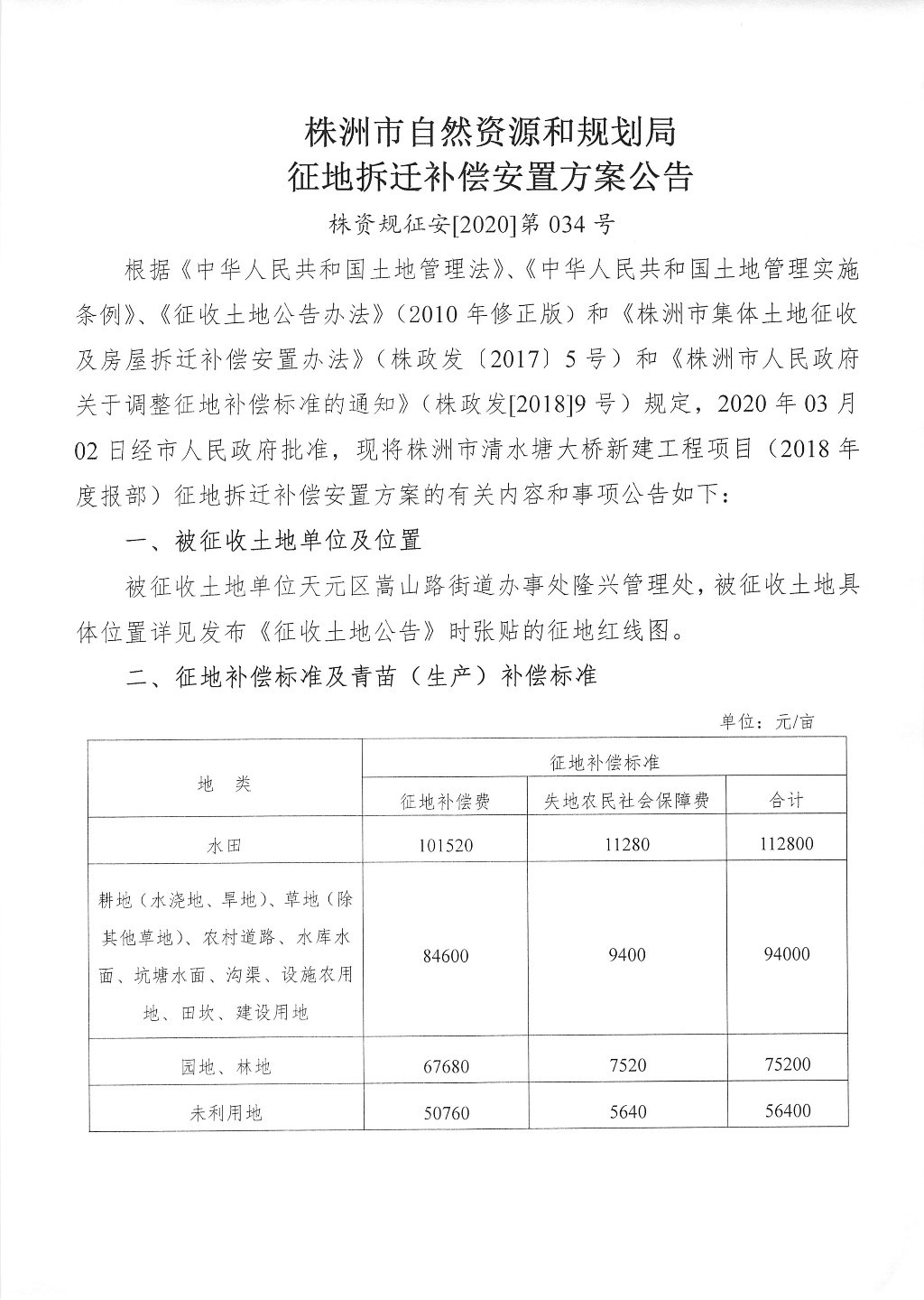征地拆迁补偿安置方案公告--株洲市清水塘大桥新建工程项目