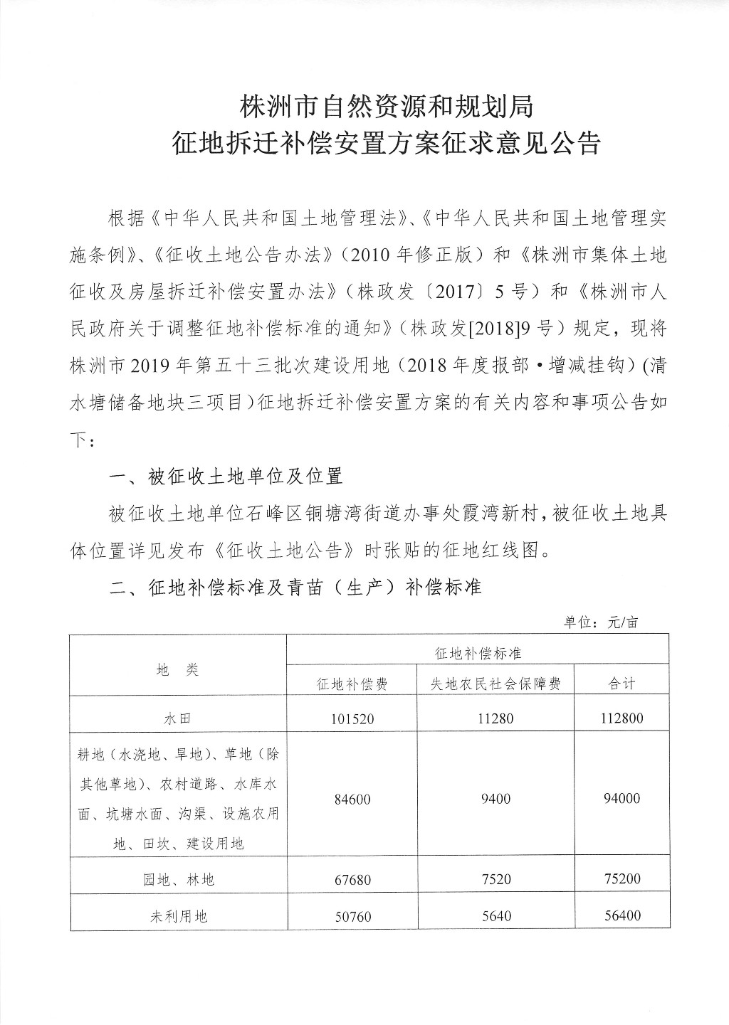 征地拆迁补偿安置方案征求意见公告--清水塘储备地块三项目