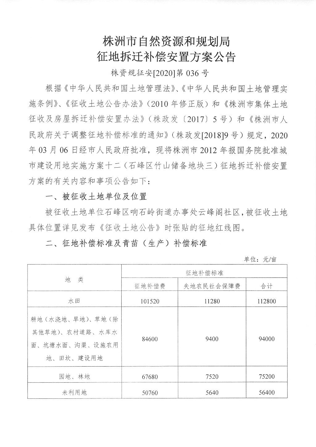 征地拆迁补偿安置方案公告---石峰区竹山储备地块三
