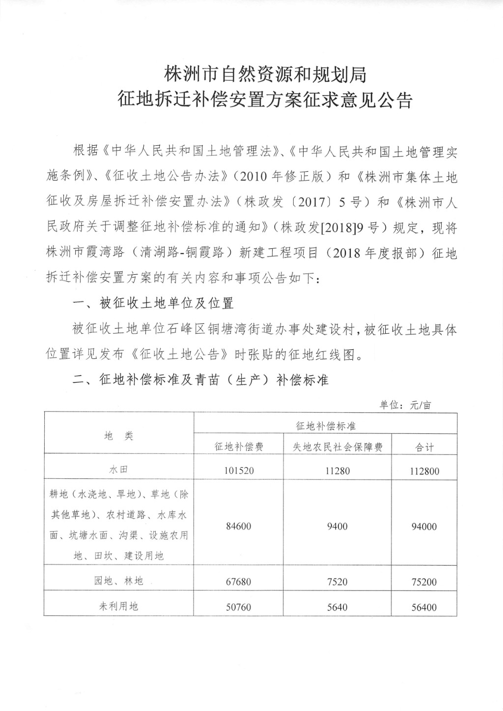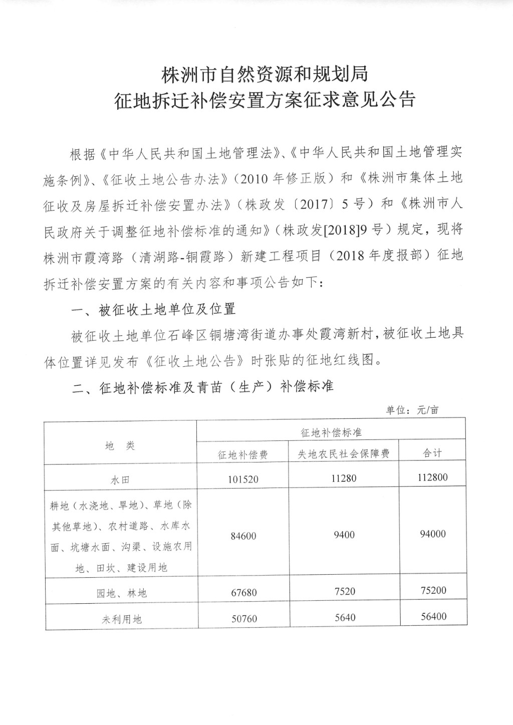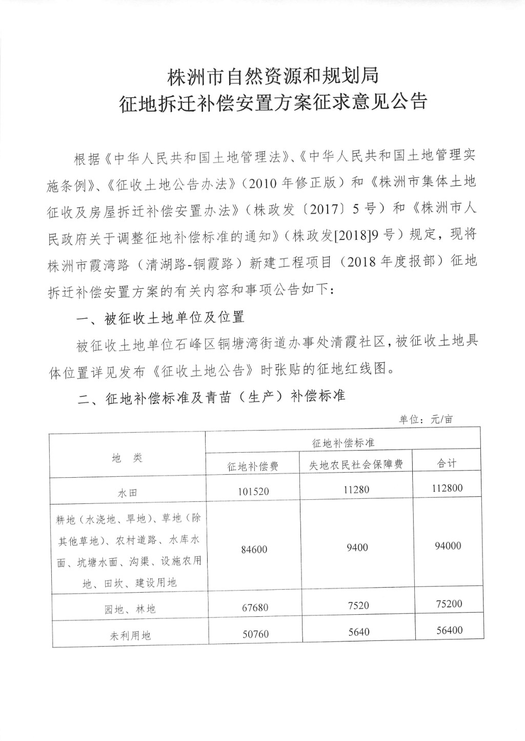 征地拆迁补偿安置方案征求意见公告--霞湾路(清湖路--铜霞路)新建工程项目