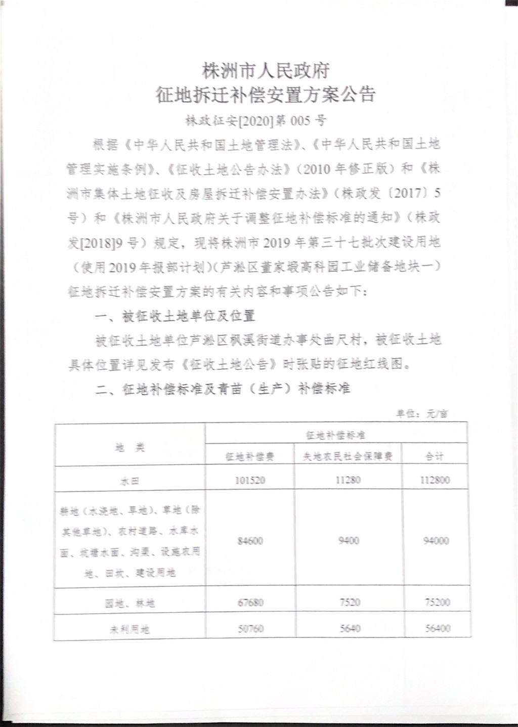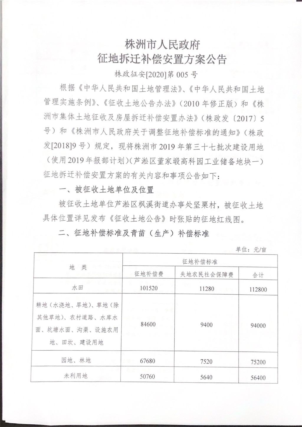 征地拆迁补偿安置方案公告--芦淞区董家塅高科园工业储备地块一