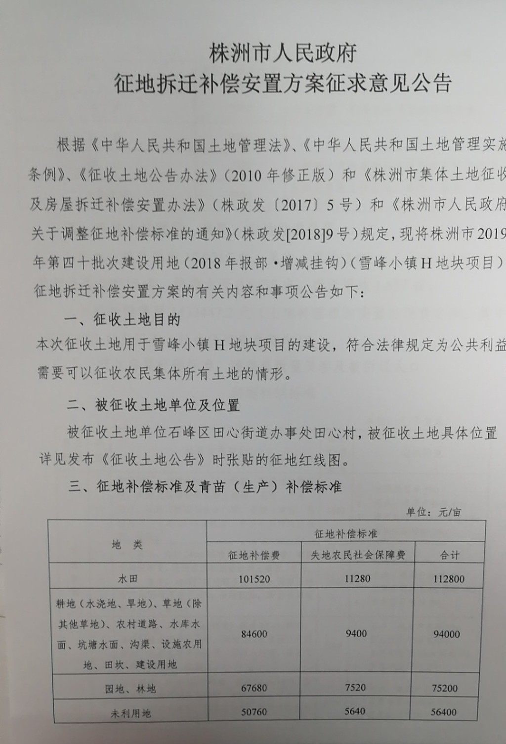 征地拆迁补偿安置方案征求意见公告--雪峰小镇H地块项目