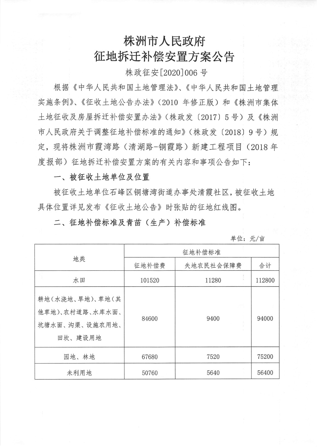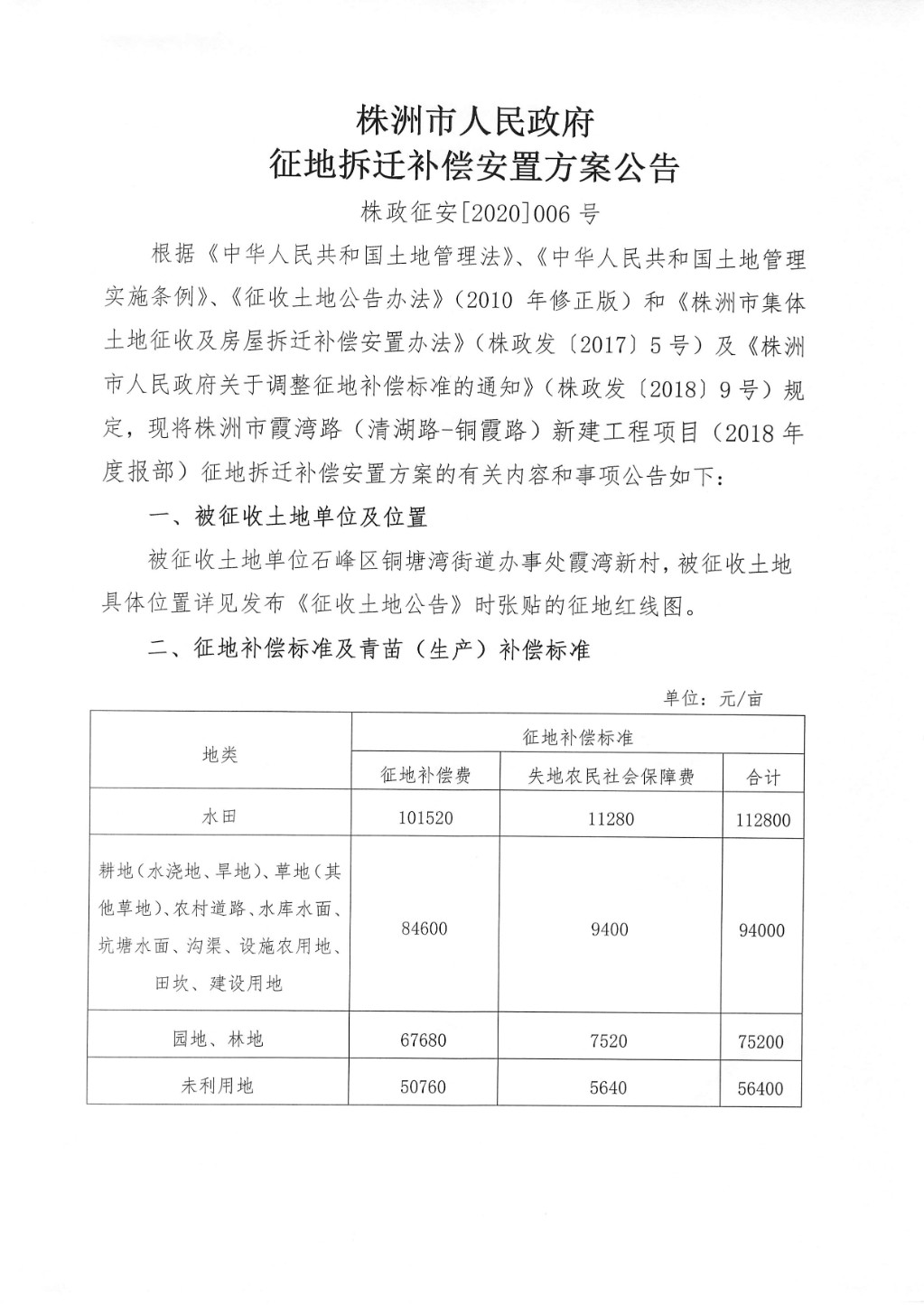 征地拆迁补偿安置方案公告--株洲市霞湾路(清湖路-铜霞路)新建工程项目