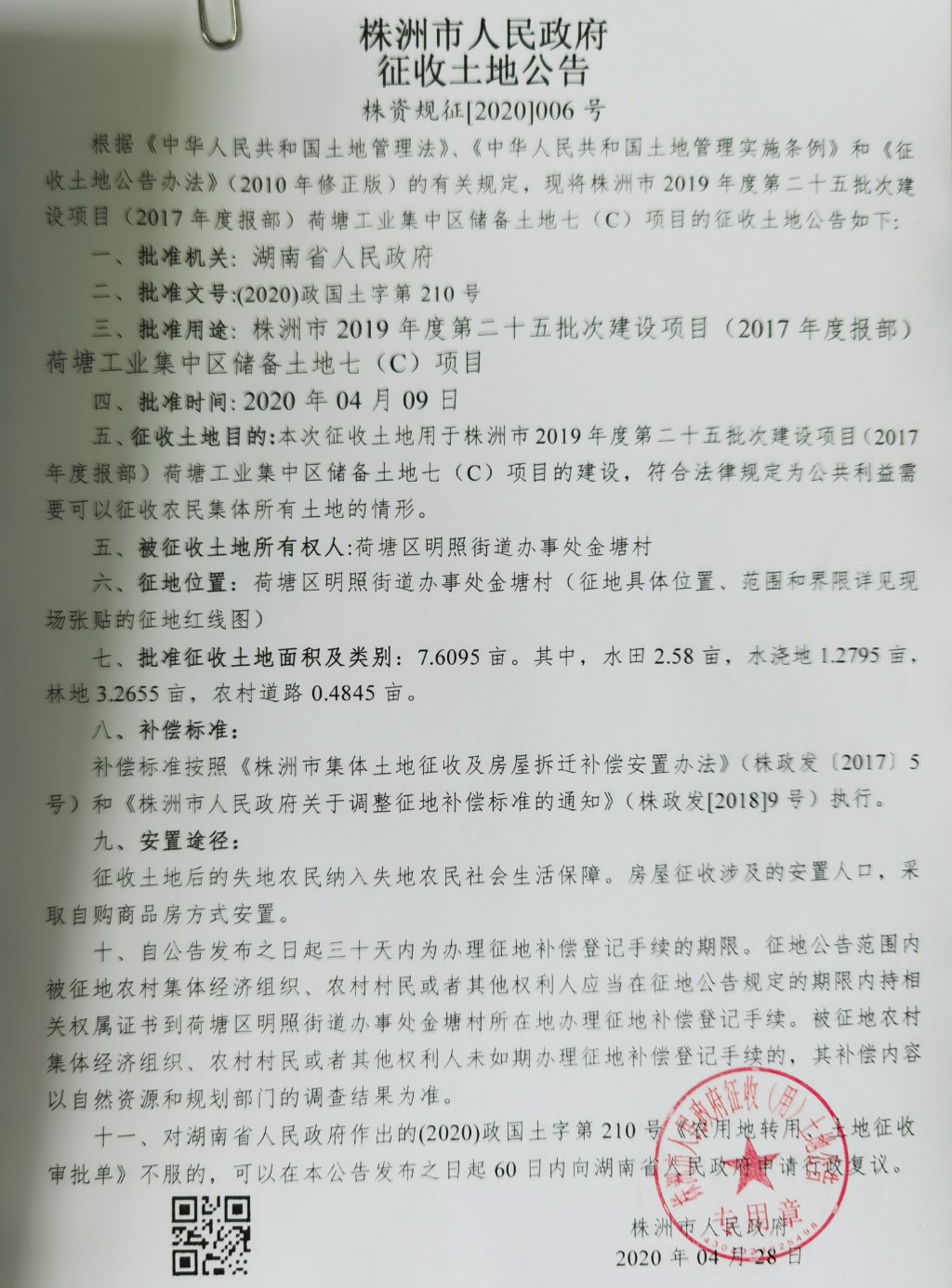 征收土地公告--荷塘工业集中区储备土地(C)项目