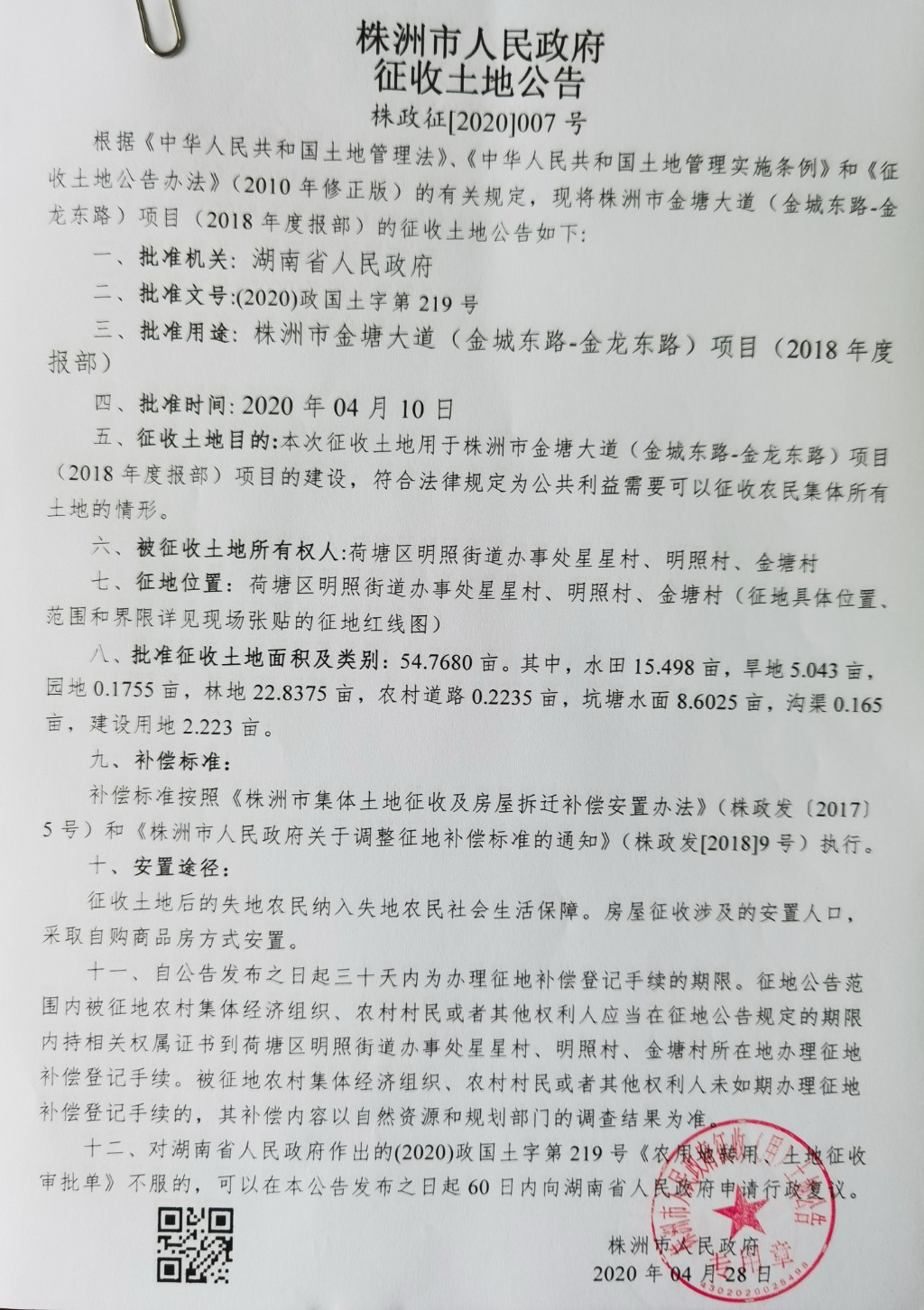 征收土地公告--金塘大道(金城东路--金龙路东路)项目