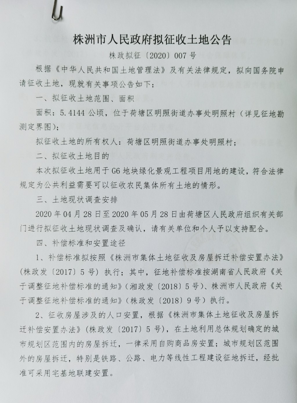 拟征收土地公告--G6地块绿化景观工程项目用地