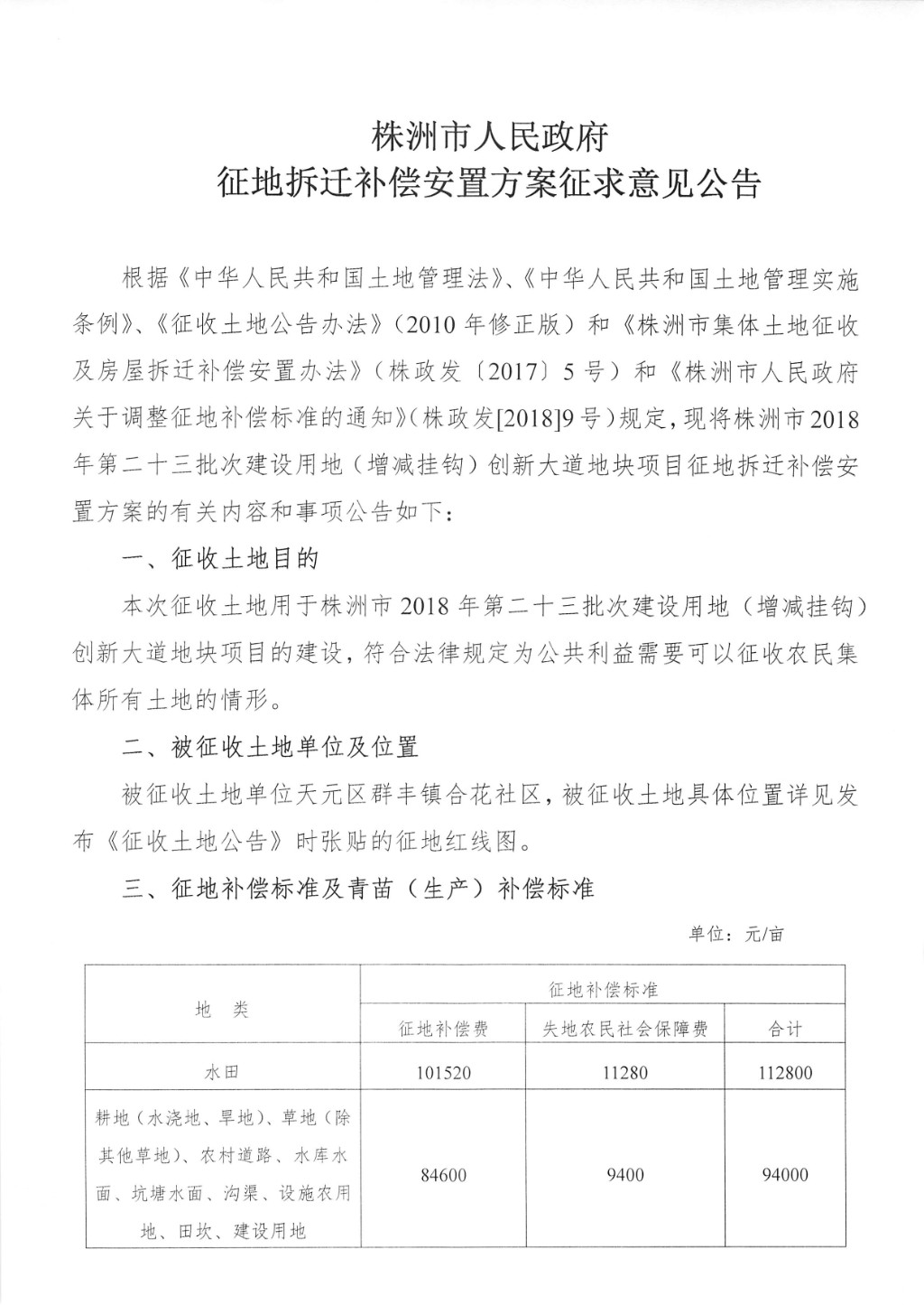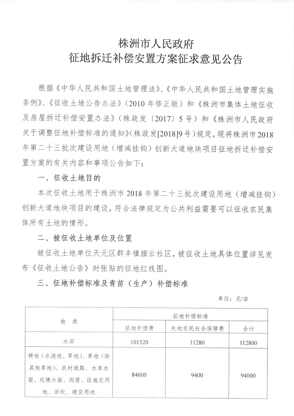 征地拆迁补偿安置方案征求意见公告--创新大道地块