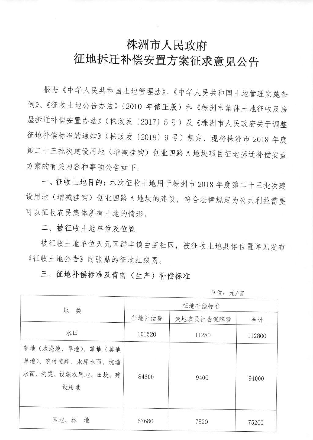 征地拆迁补偿安置方案征求意见公告--创业四路A地块
