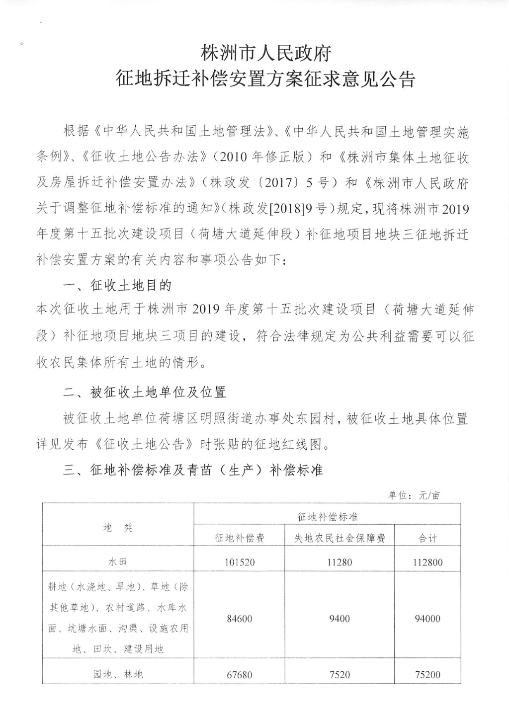 征地拆迁补偿安置方案征求意见公告--荷塘大道延伸段补征地项目地块三