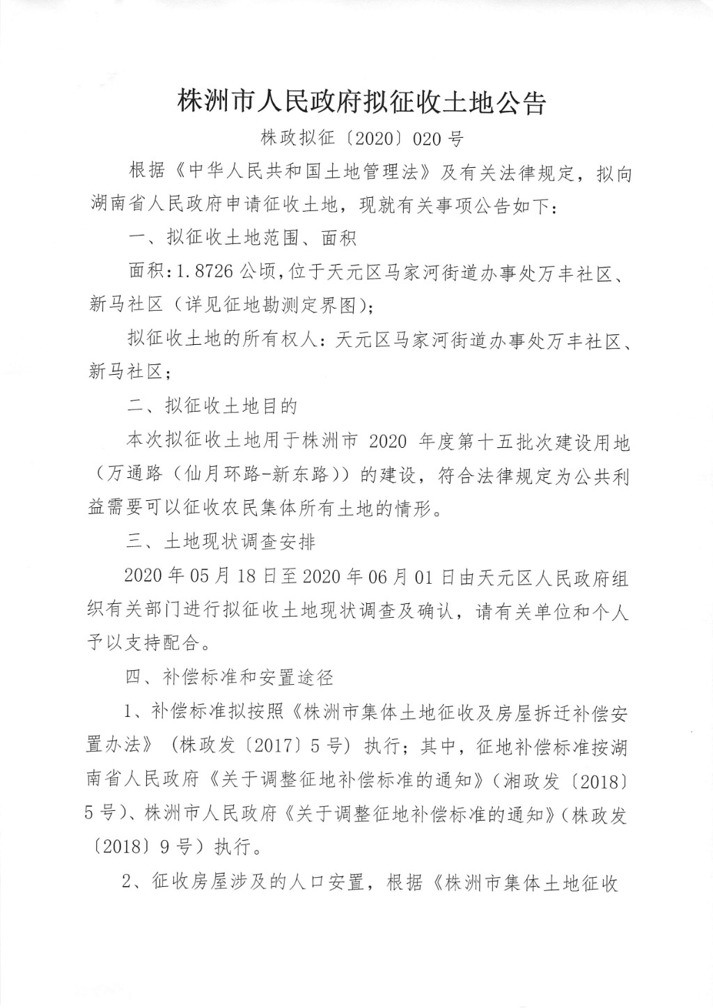 拟征征收土地公告--万通路(仙月环路--新东路)