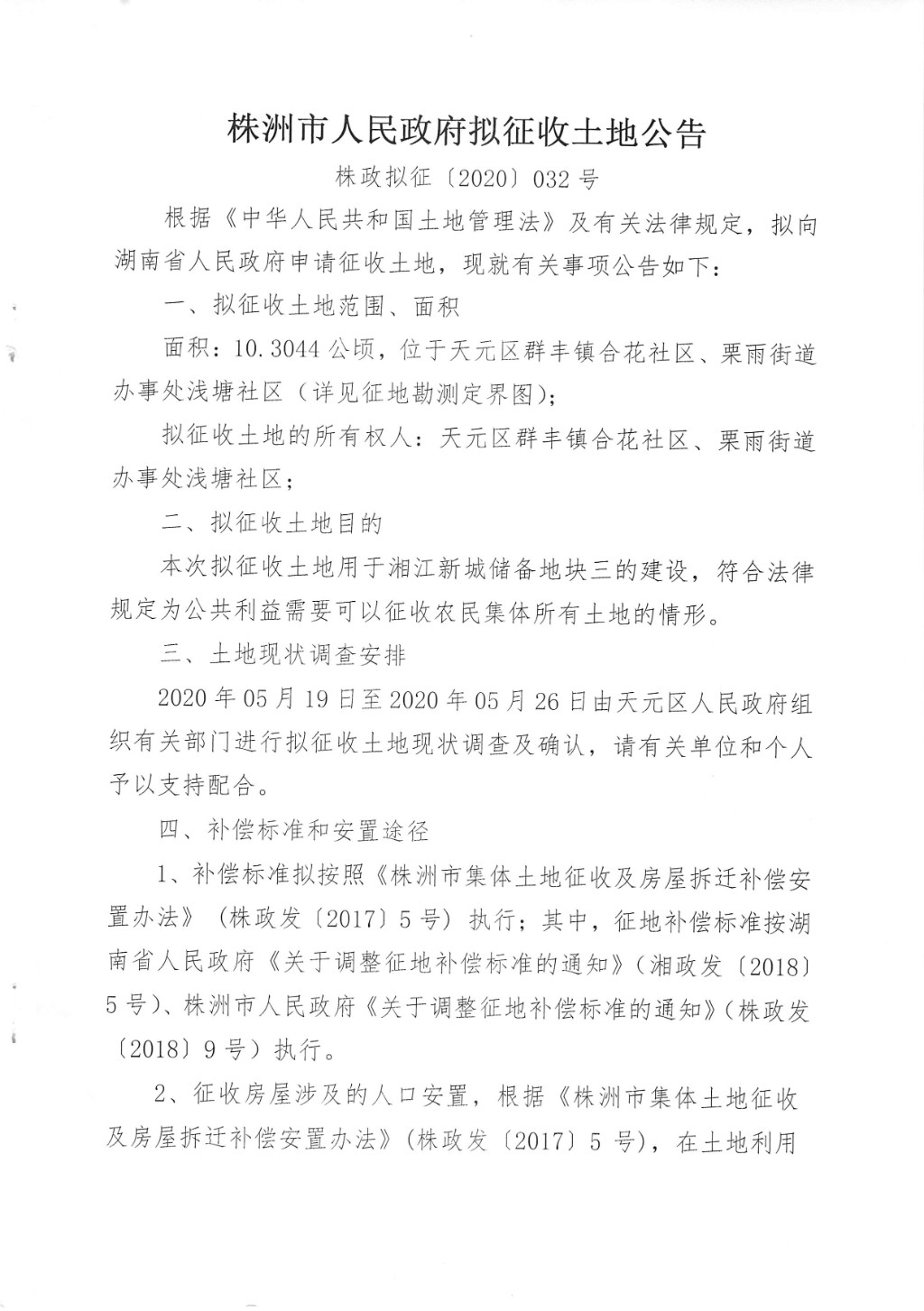 拟征收土地公告--湘江新城储备地块三