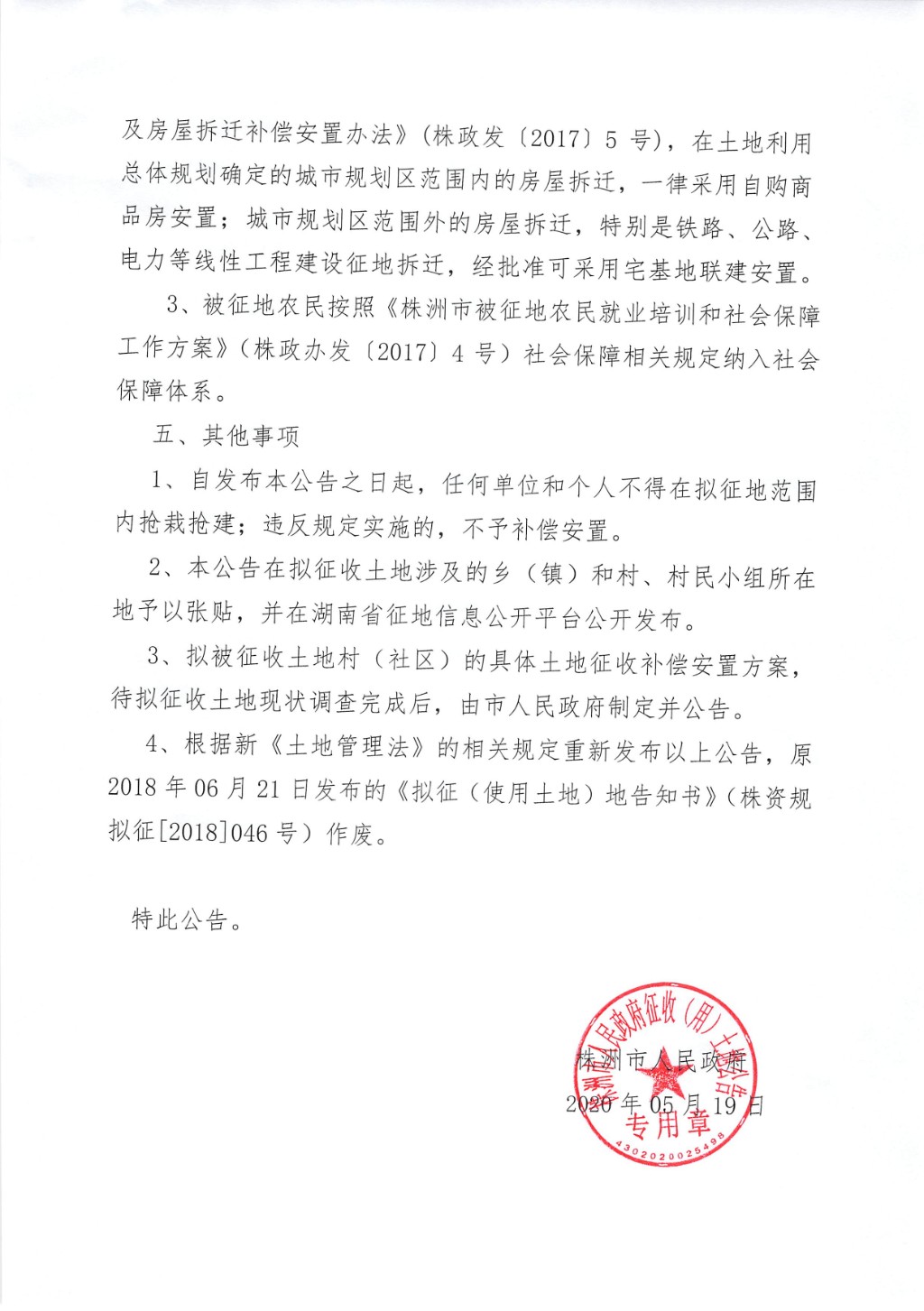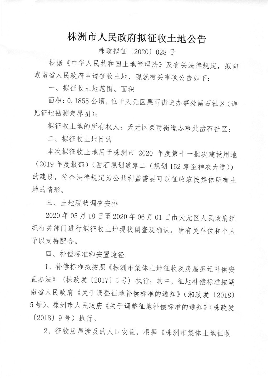 拟征收土地公告--凿石规划道路二(规划152路至神农大道)