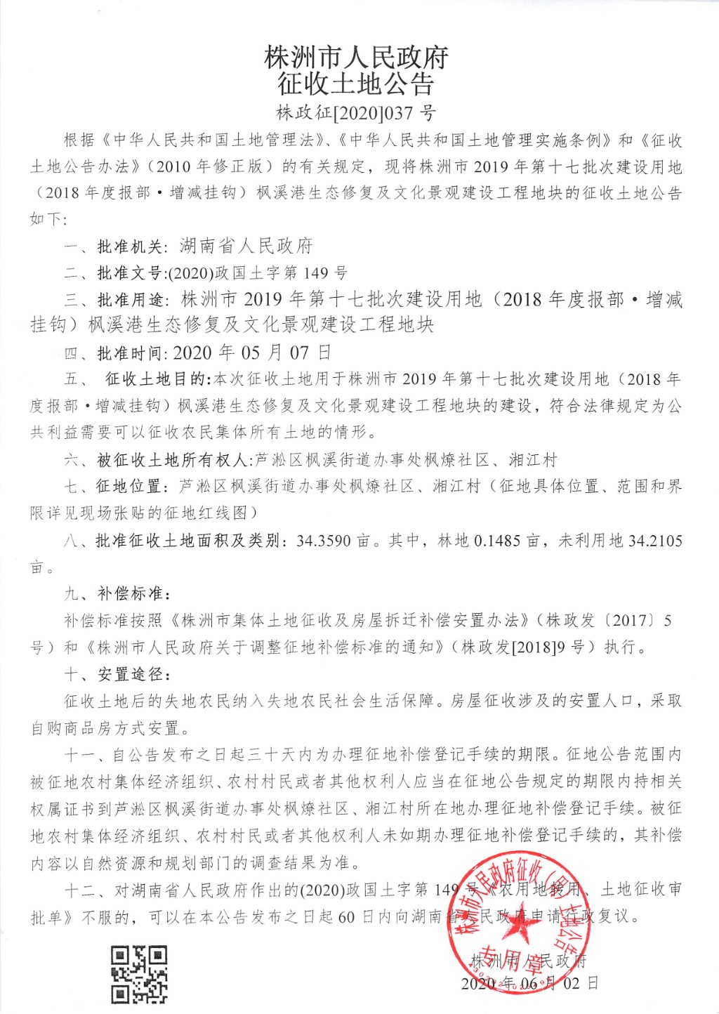 征收土地公告--枫溪港生态修复及文化景观建设工程地块