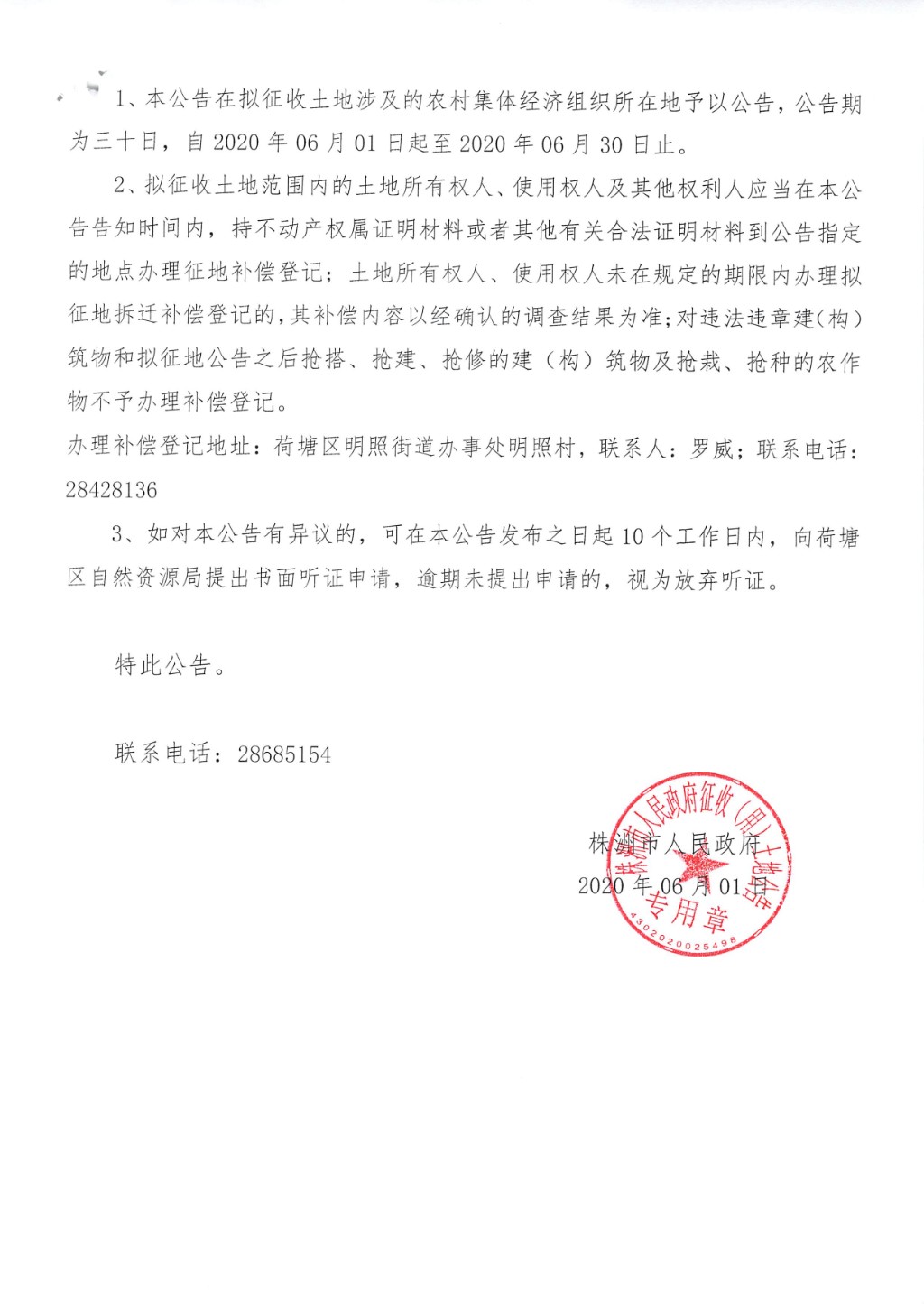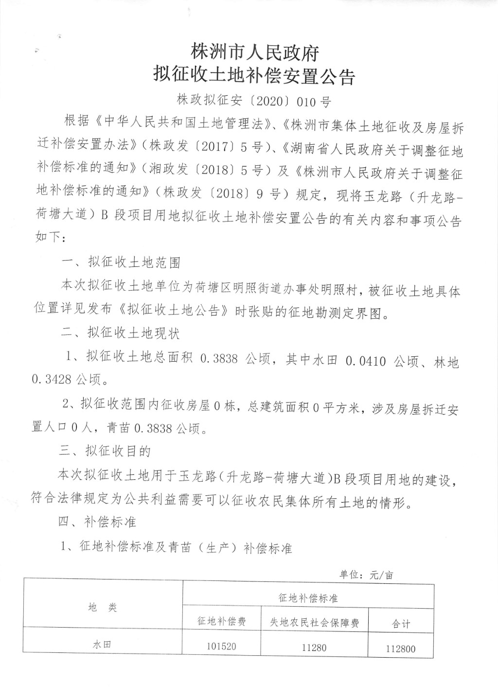 拟征收土地补偿安置公告--玉龙路(升龙路--荷塘大道)B段
