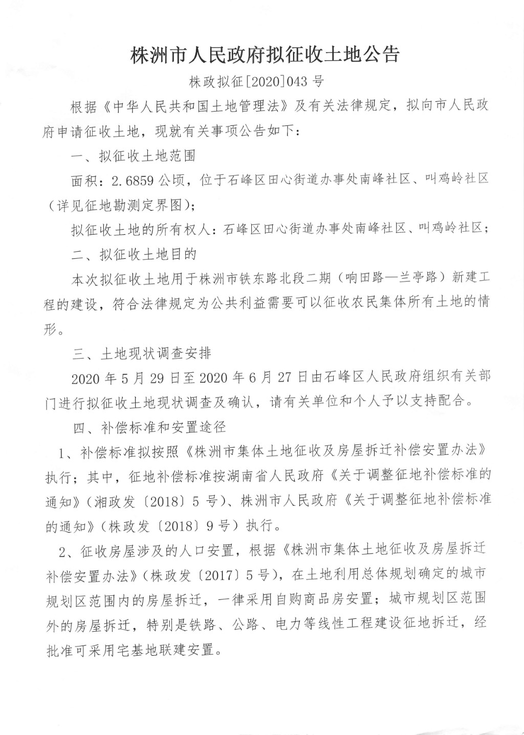 拟征收土地公告--株洲市铁东路北段二期(响田路--兰亭路)