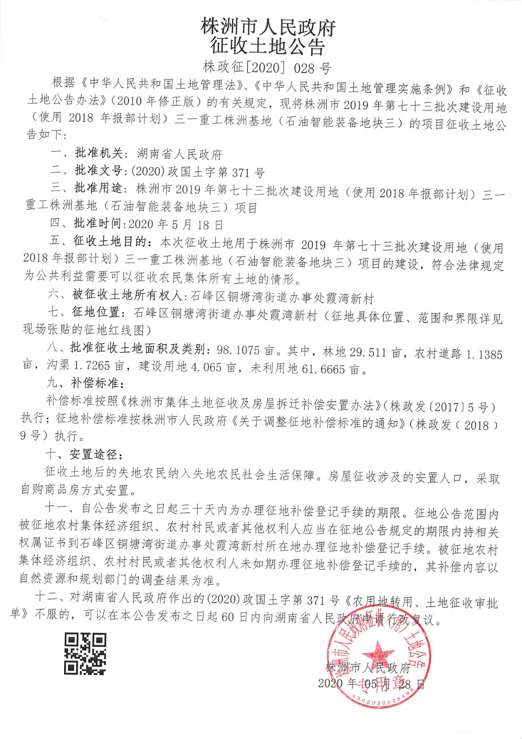 征收土地公告--三一重工株洲基地(石油智能装备地块三)