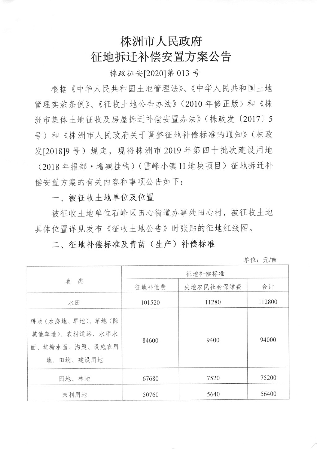 征地拆迁补偿安置方案公告--雪峰小镇H地块