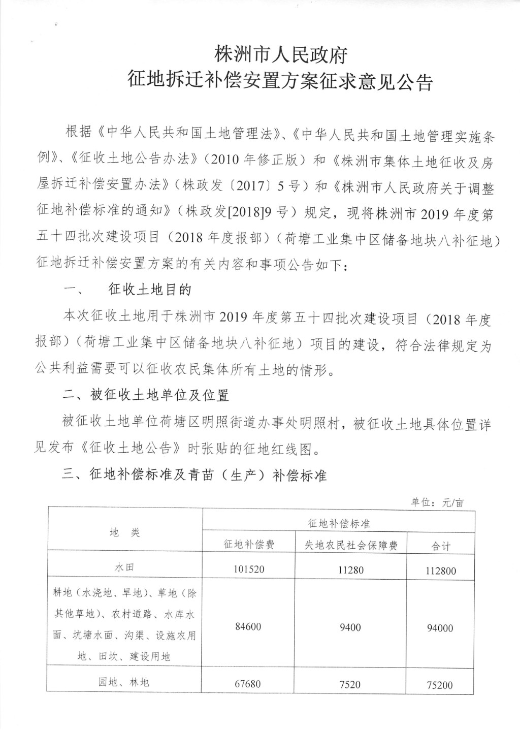 征地拆迁补偿安置方案征求意见公告--荷塘工业集中区储备地块八补征地