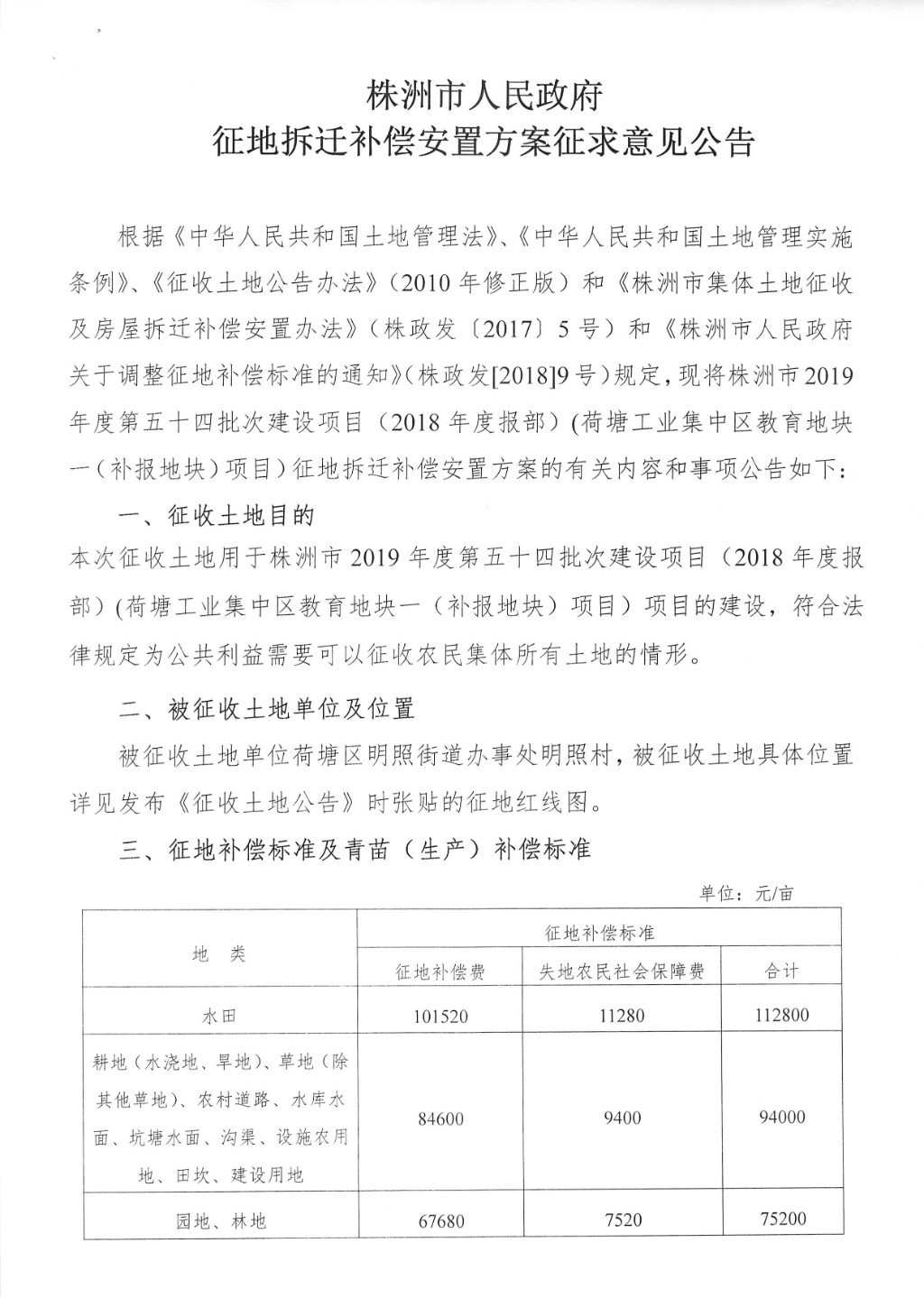 征地拆迁补偿安置方案征求意见公告--荷塘工业集中区教育地块一(补报地块)