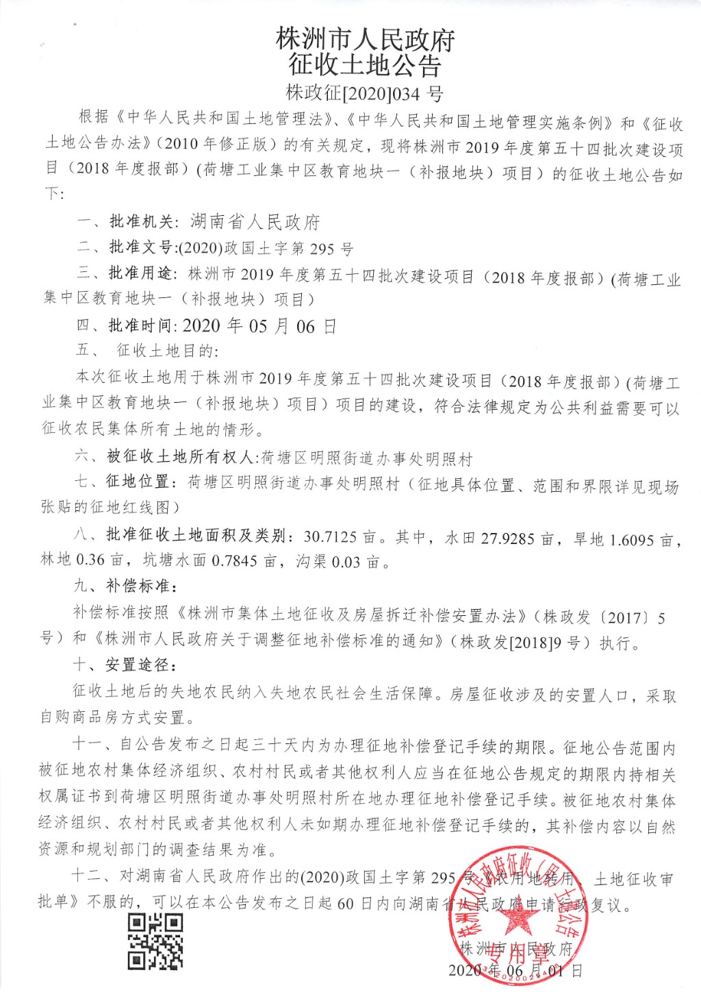 征收土地公告--荷塘工业集中区教育地块一(补报地块)