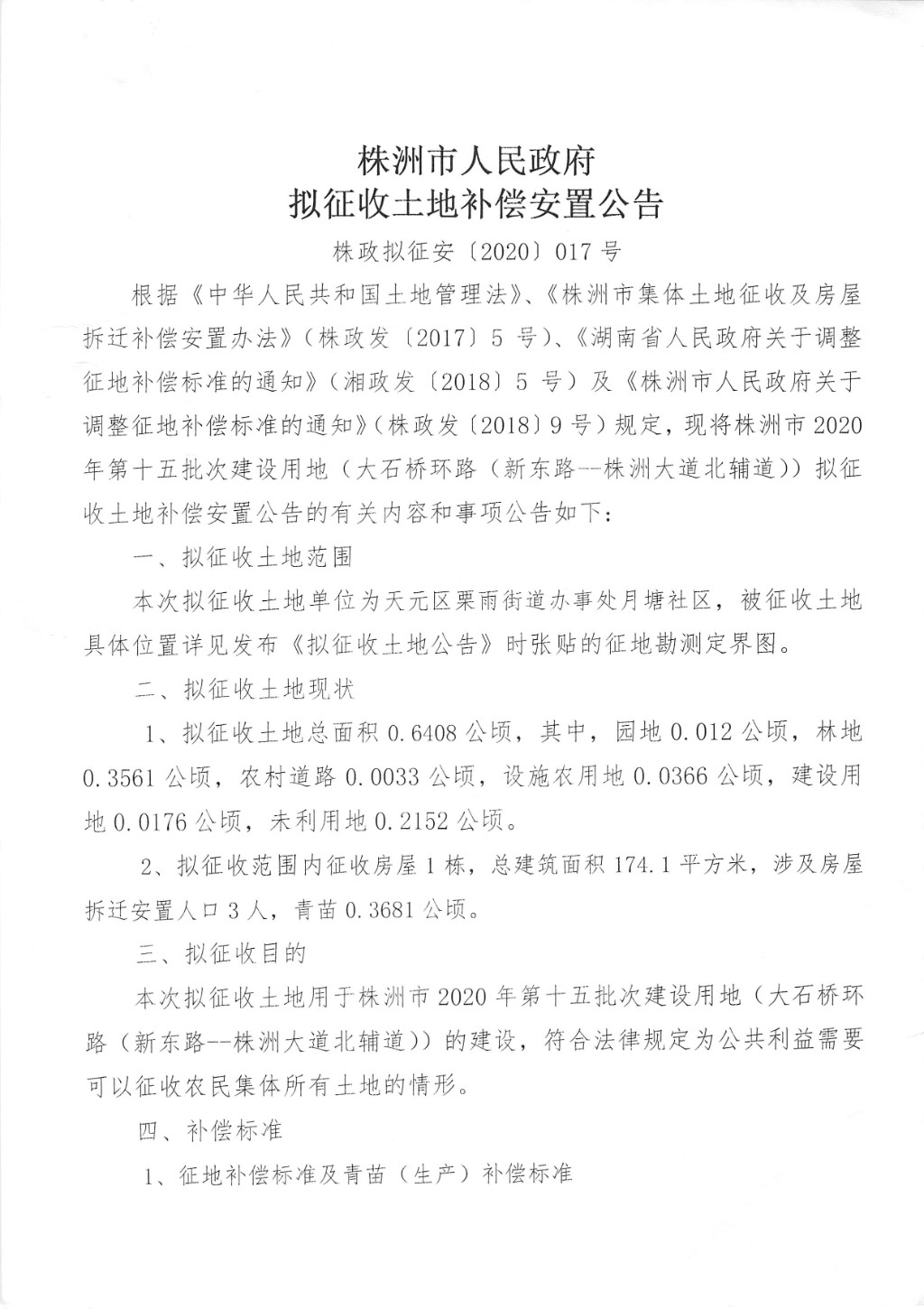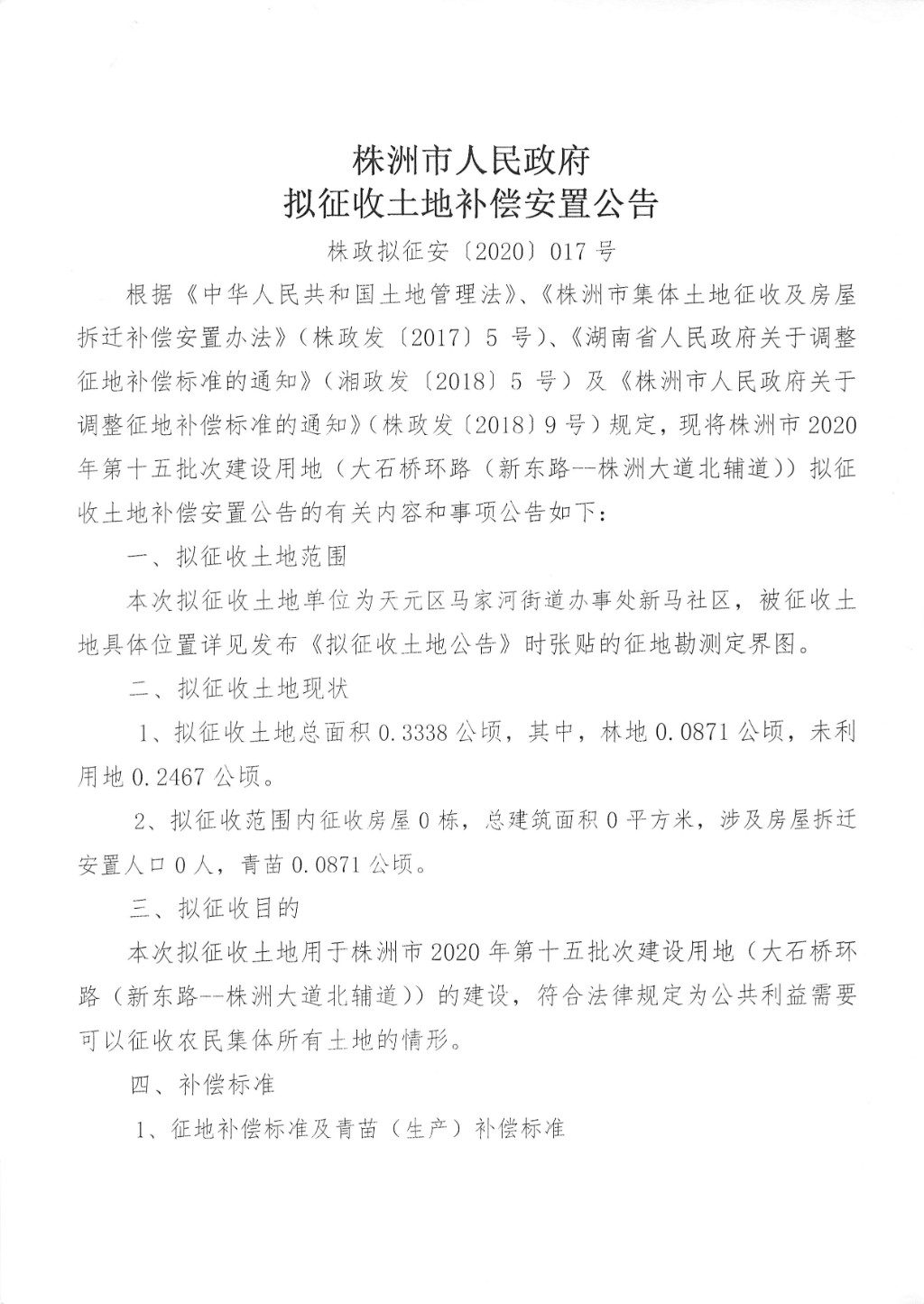 拟征收土地补偿安置公告--大石桥环路(新东路--株洲大道北辅道)