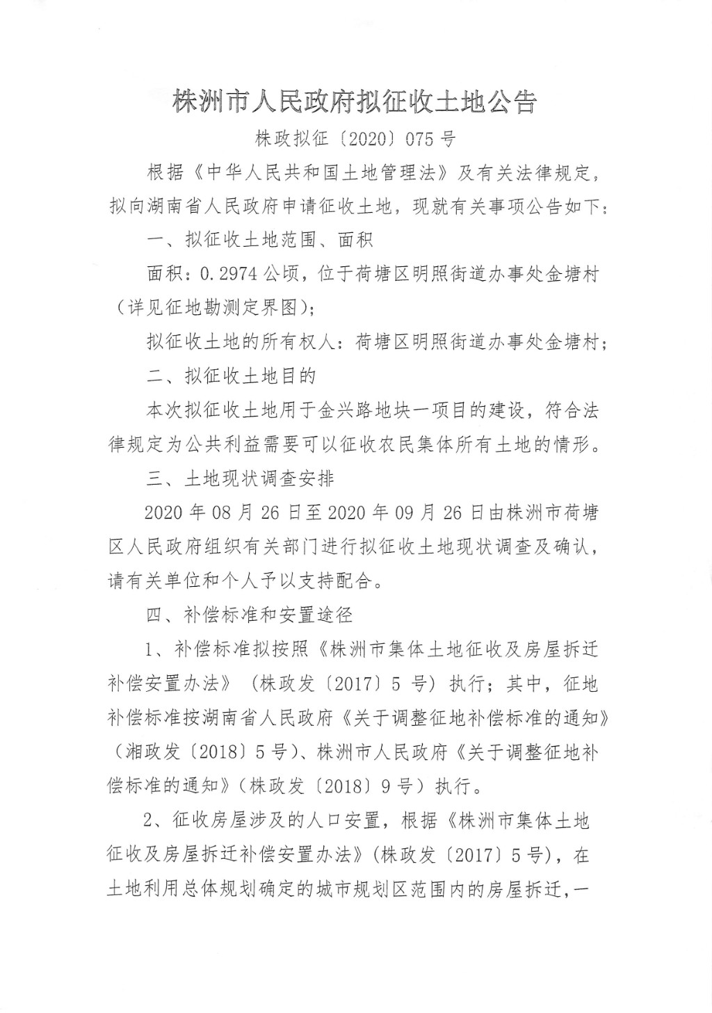拟征收土地公告---金兴路地块一项目