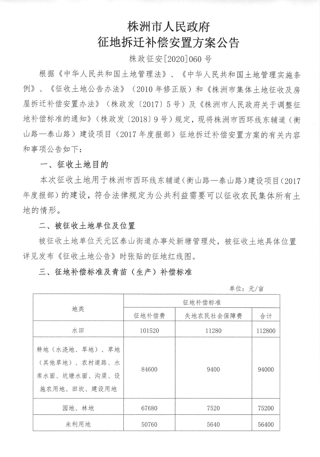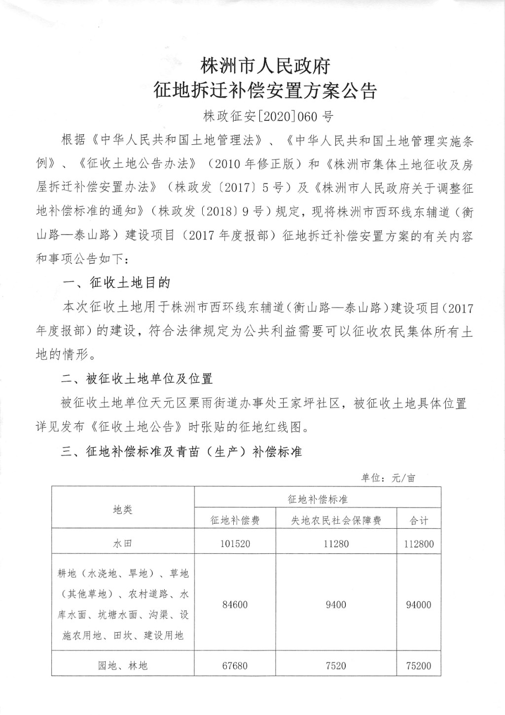 征地拆迁补偿安置方案公告---株洲市西环线东辅道(衡山路--泰山路)