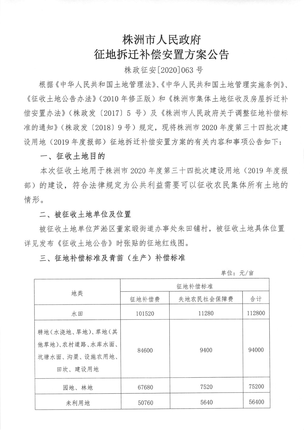 征地拆迁补偿安置方案公告--株洲市2020年度第三十四批次建设用地(2019年度报部)