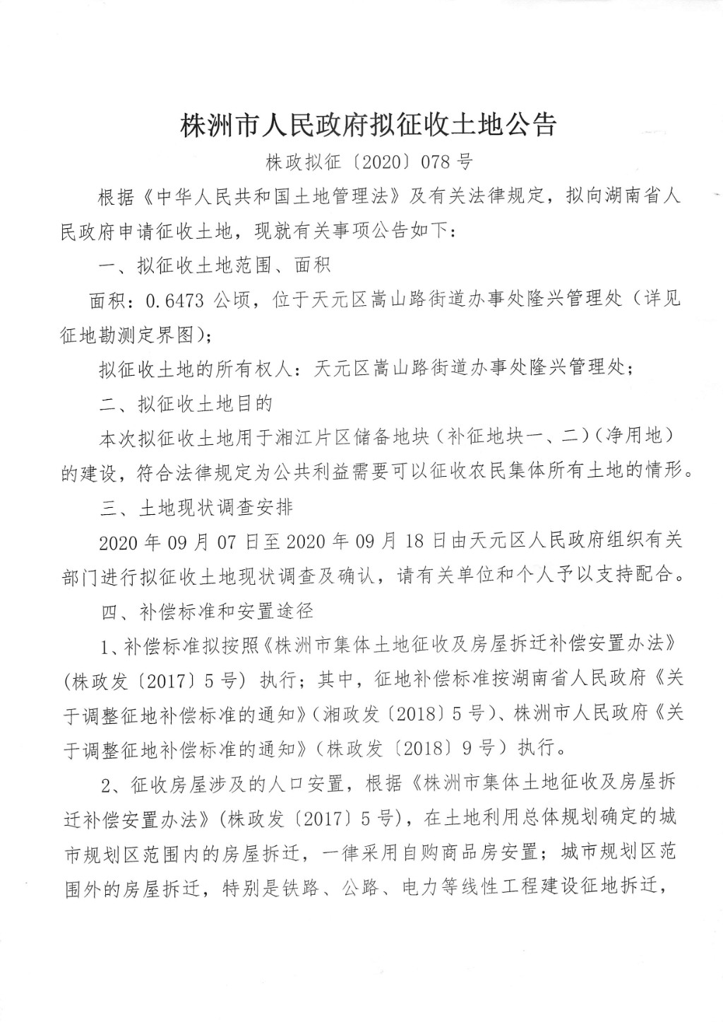 拟征收土地公告---湘江片区储备地块(补征地一、二)(净用地)