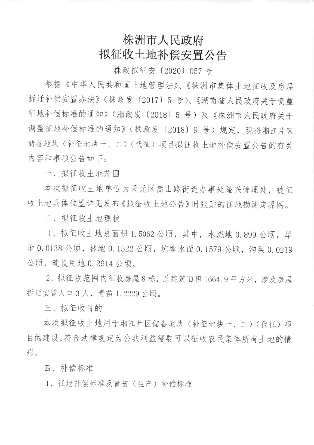 拟征收土地补偿安置公告--湘江片区储备地块(补征地块一、二)(代征)