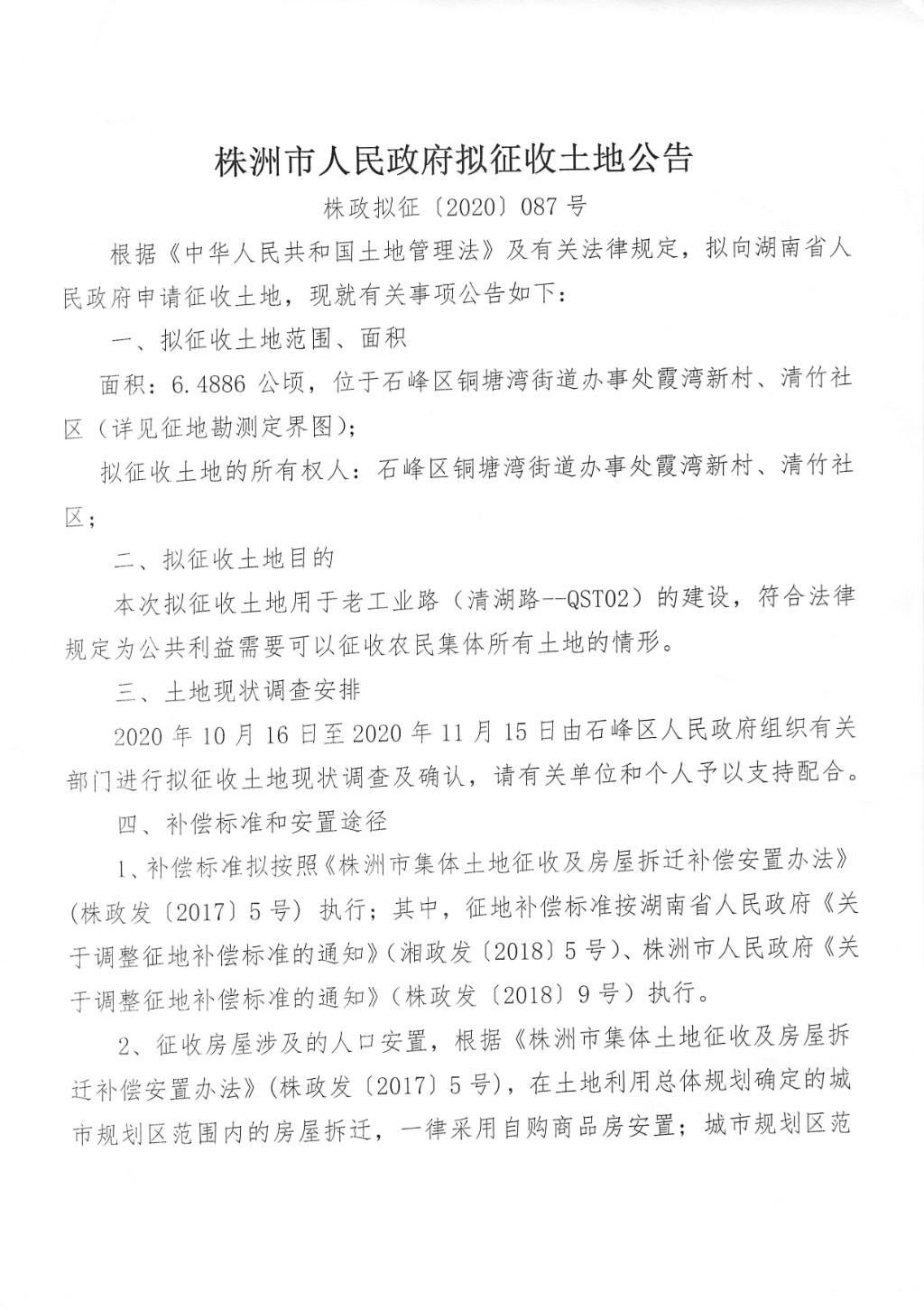 拟征收土地公告--老工业路(清湖路--QST02)