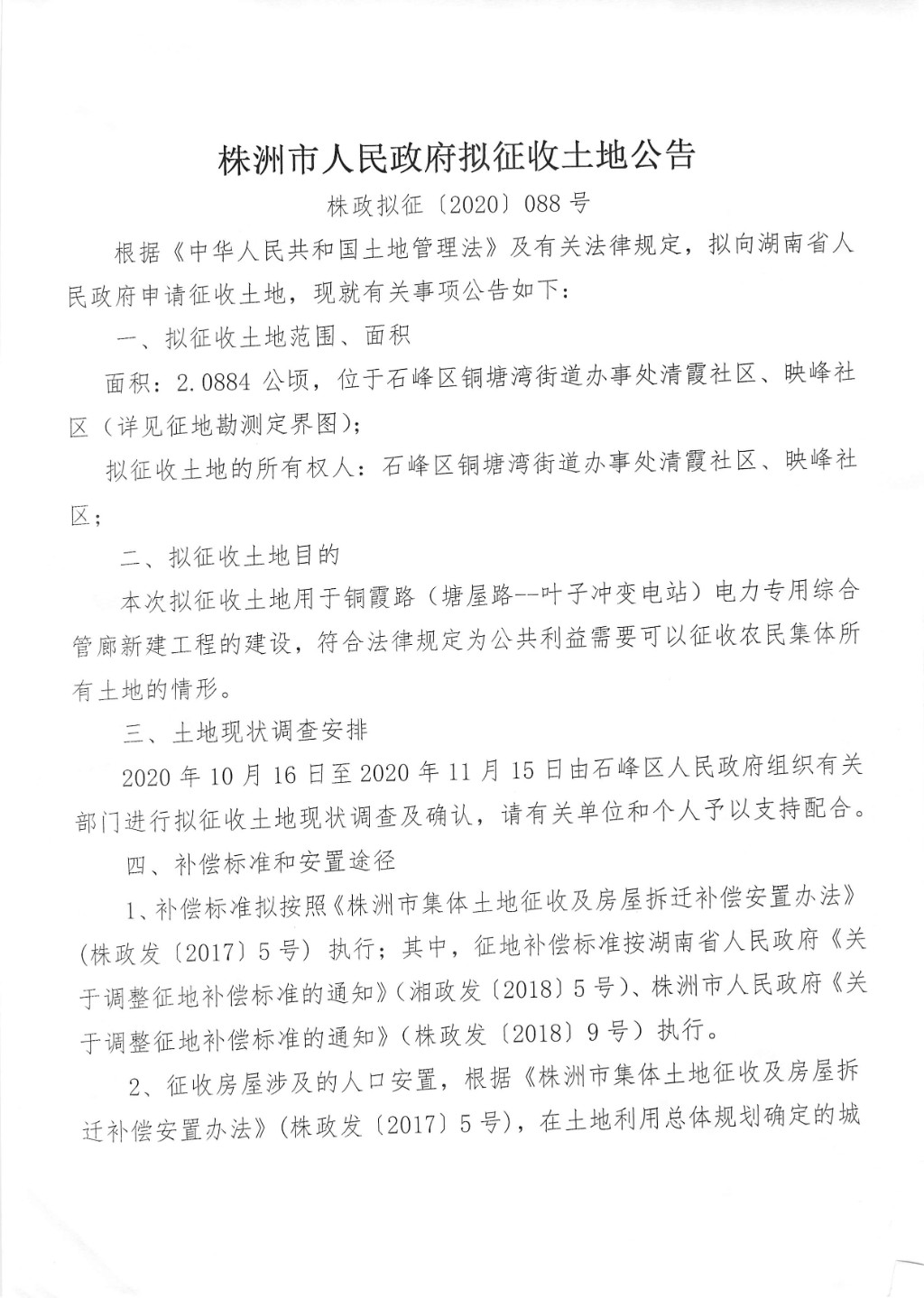 拟征收土地公告--铜霞路(塘屋路--叶子冲变电站)电力专用综合管廊新建工程
