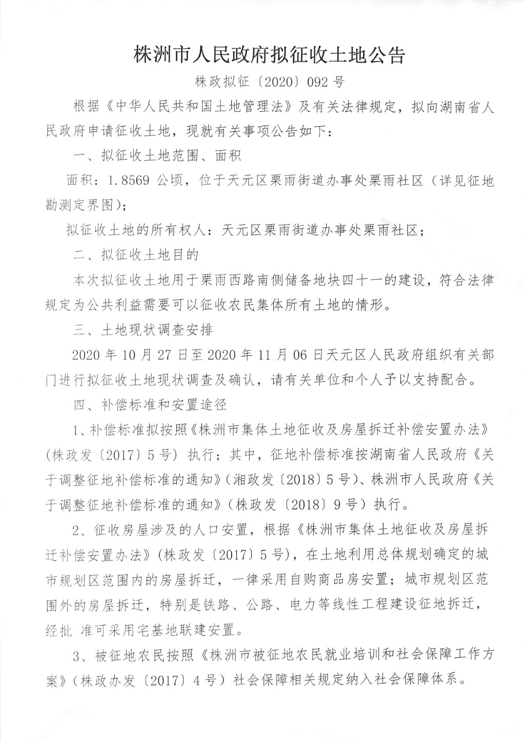 拟征收土地公告--栗雨西路南侧储备地块四十一