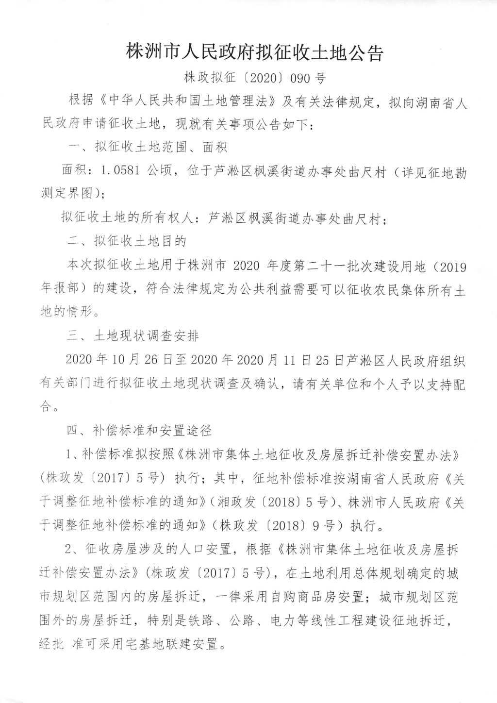拟征收土地公告--株洲市2020年度第二十一批次建设用地(2019年报部)