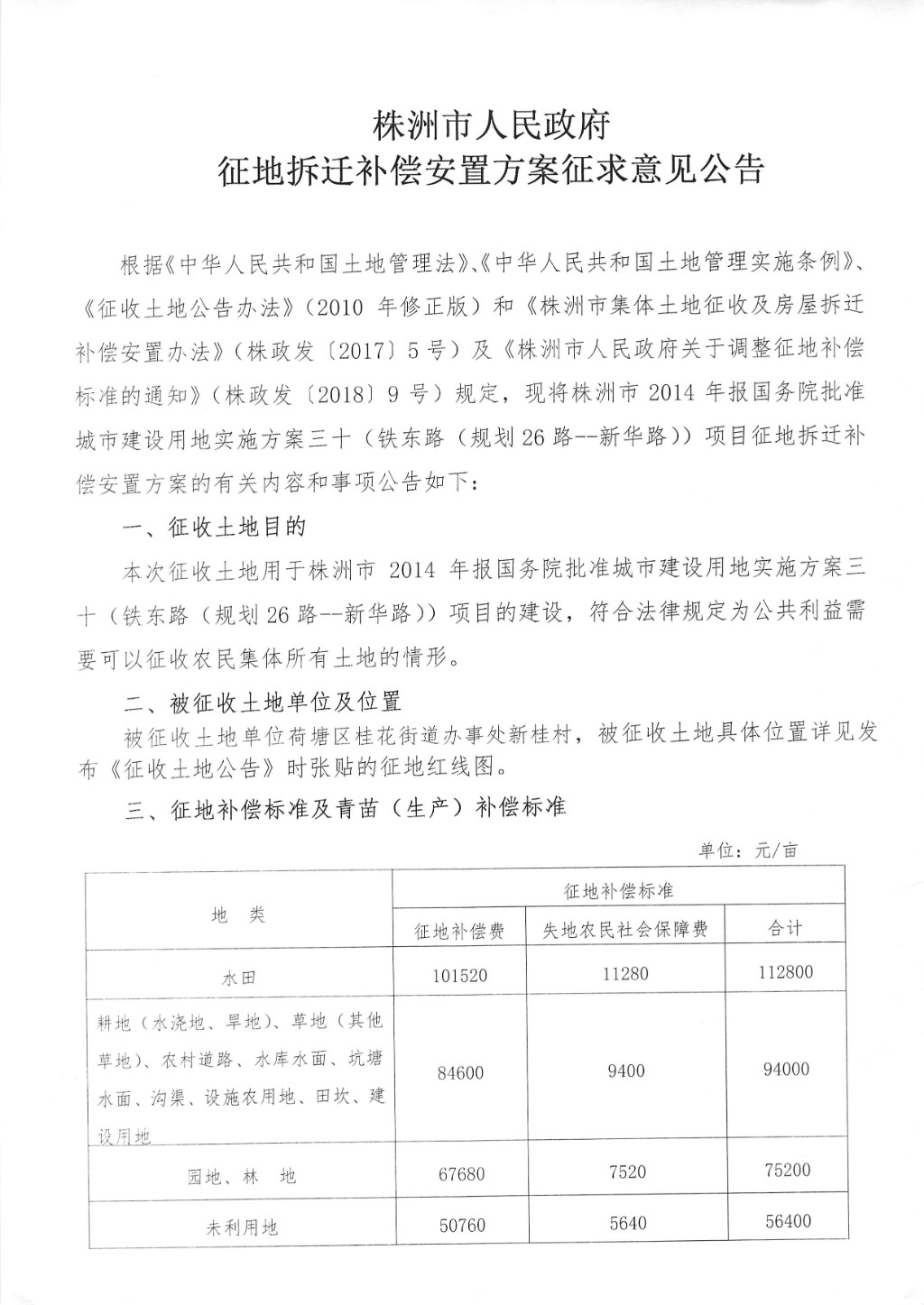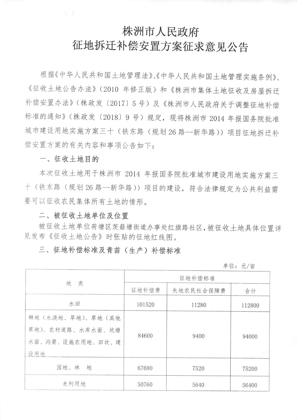 征地拆迁补偿安置方案征求意见公告--铁东路(规划26路--新华路)