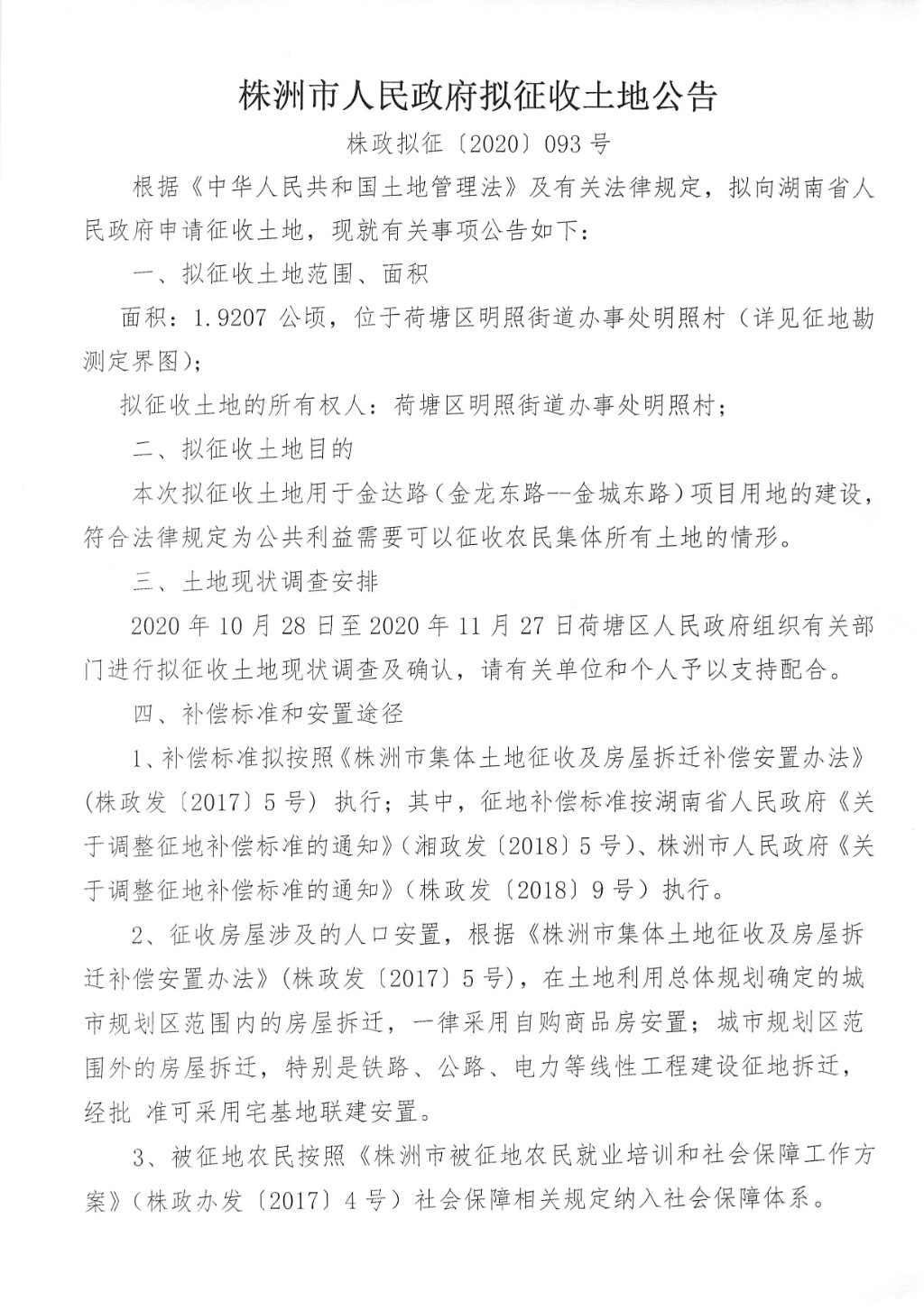 拟征收土地公告--金达路(金龙东路--金城东路)项目