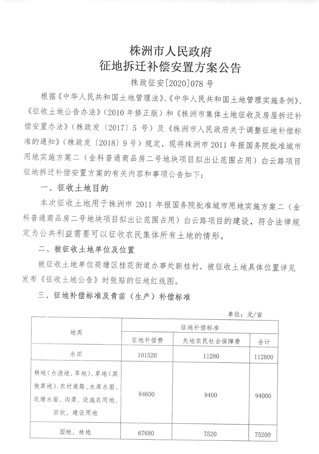 征地拆迁补偿安置方案公告--金科普通商品房二号地块项目拟出让范围占用白云路项目