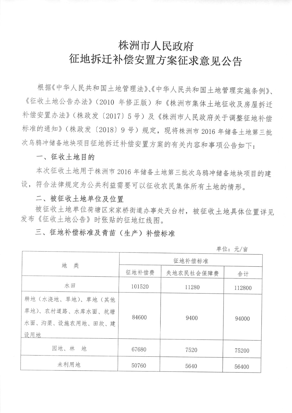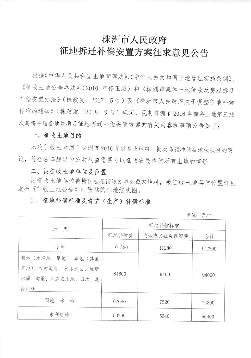 征地拆迁补偿安置方案征求意见公告--乌鸦冲储备地块项目