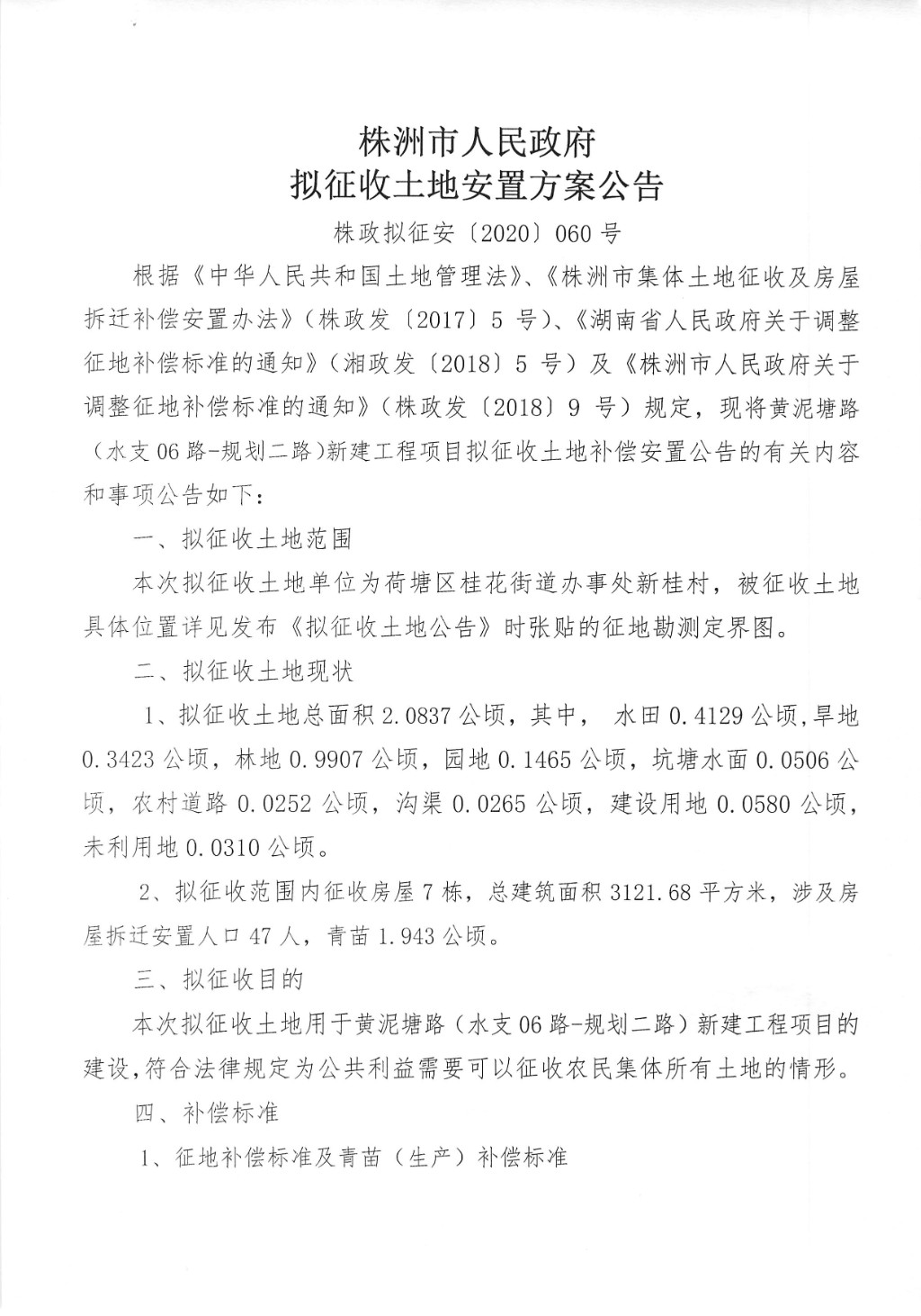 拟征收土地安置方案公告--黄泥塘路(水支06路--规划二路)新建工程项目