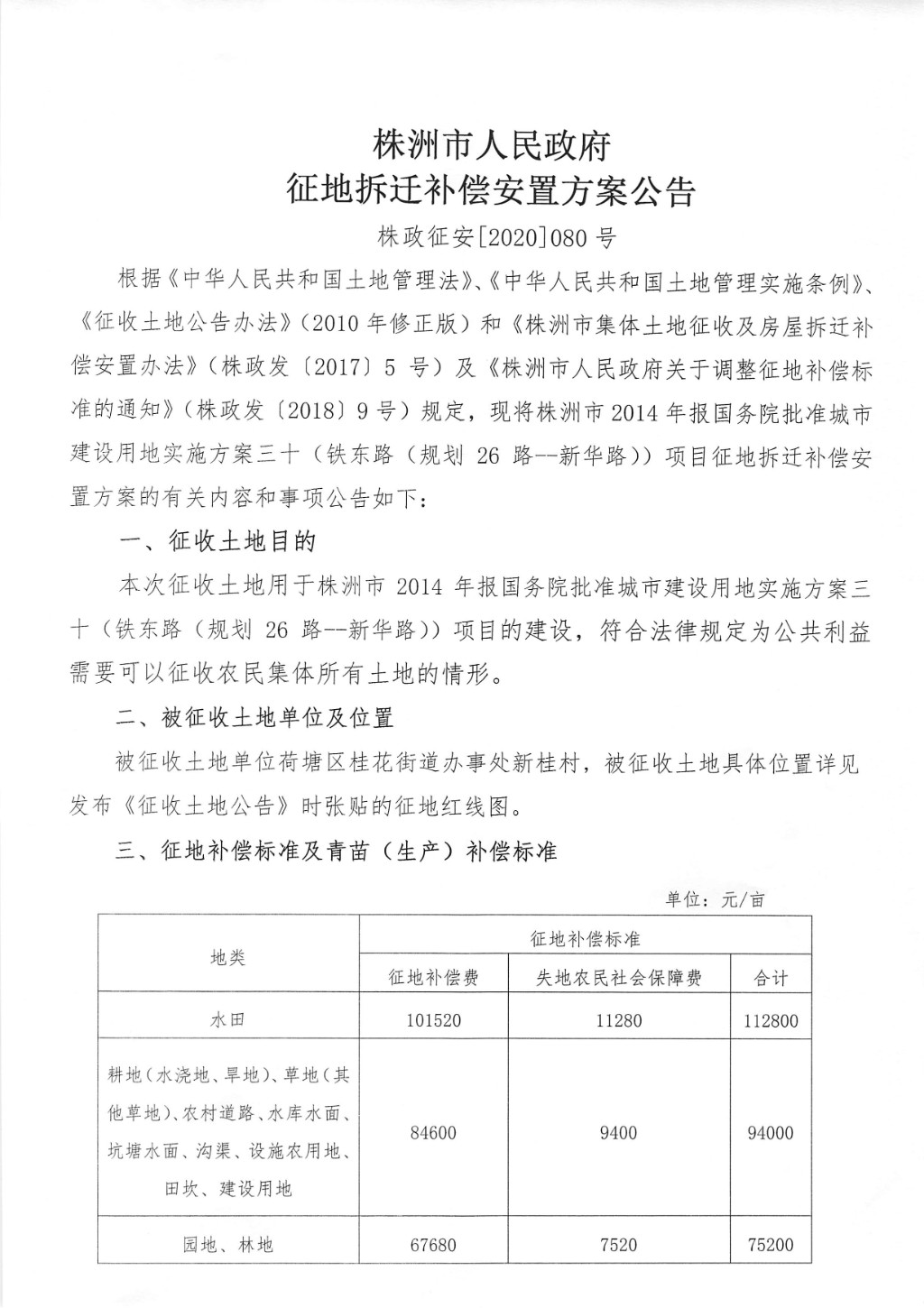 征地拆迁补偿安置方案公告--铁东路(规划26路--新华路)项目